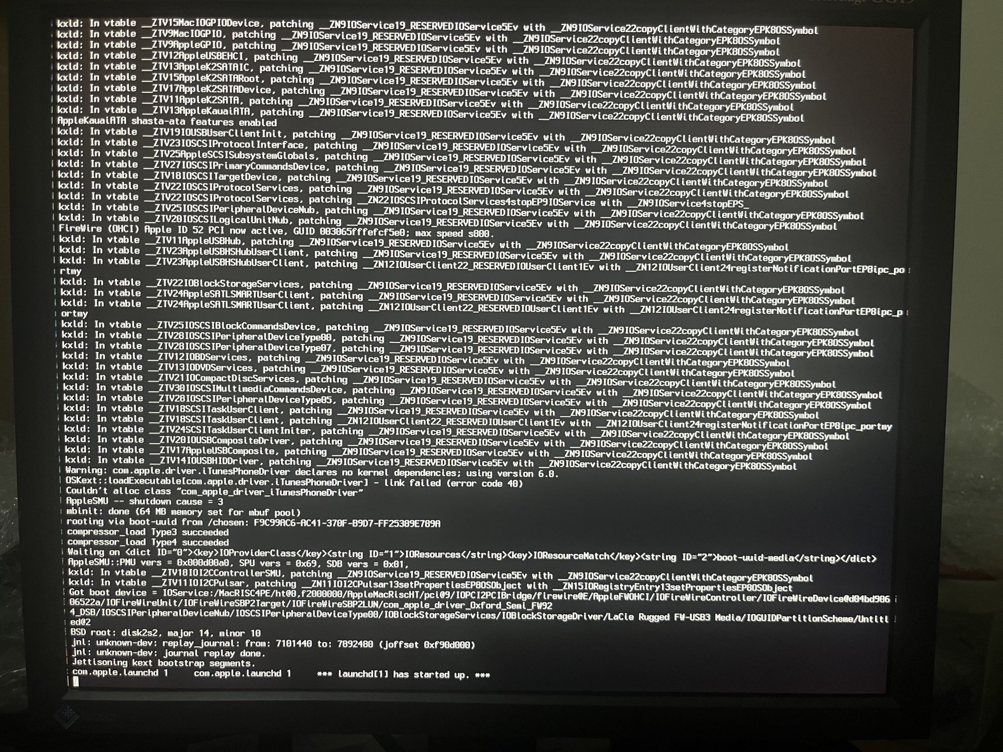 UPD. On PB G4 it boots fine. It would be cool to have G5 working, I cannot do any development work on G4, that is unbearably slow LOL