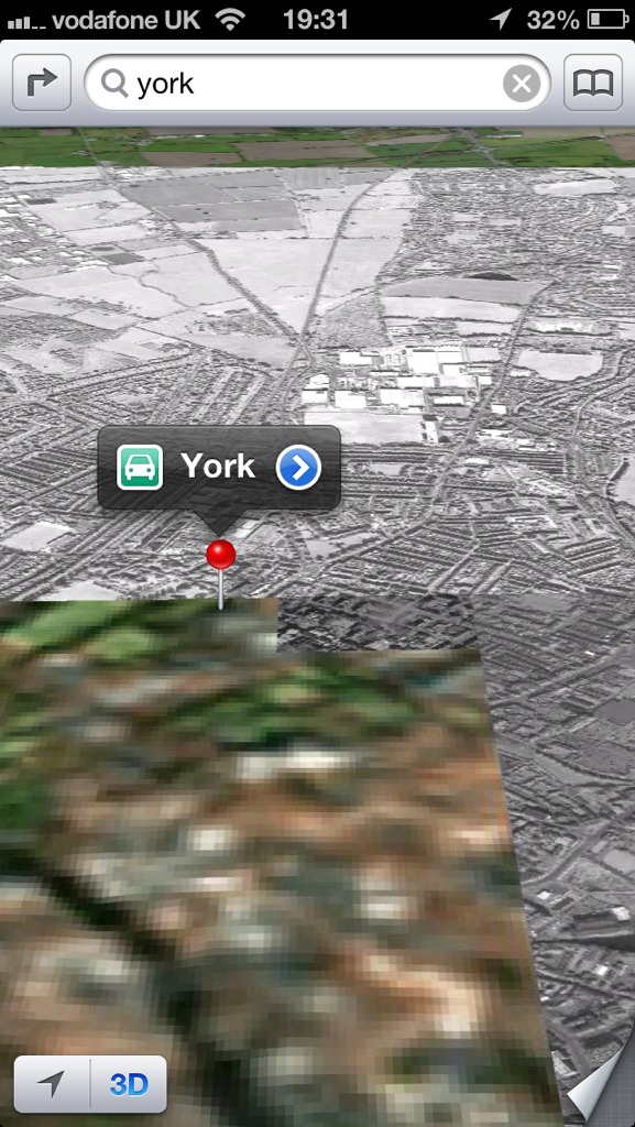 Really too bad because I'd love to use Apple Maps, but for now if I don't know where I'm doing, I'll use Navigon that I've had for a few years and check traffic on Google. (Navigon has traffic data, but it doesn't show on the map - more in suggested route times or route changes).