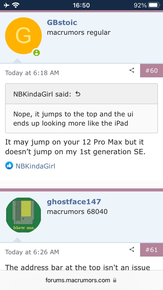 Yeah definitely. And that would bother me too. I’m glad I don’t really use mine on landscape because I don’t like how the last tab overlaps with the plus sign to add a new tab. I’m surprised they didn’t really take into consideration the different screen sizes, especially with the SE.Of course it is related to the screen size. The point is that the new Safari is pretty well unusable on an SE.