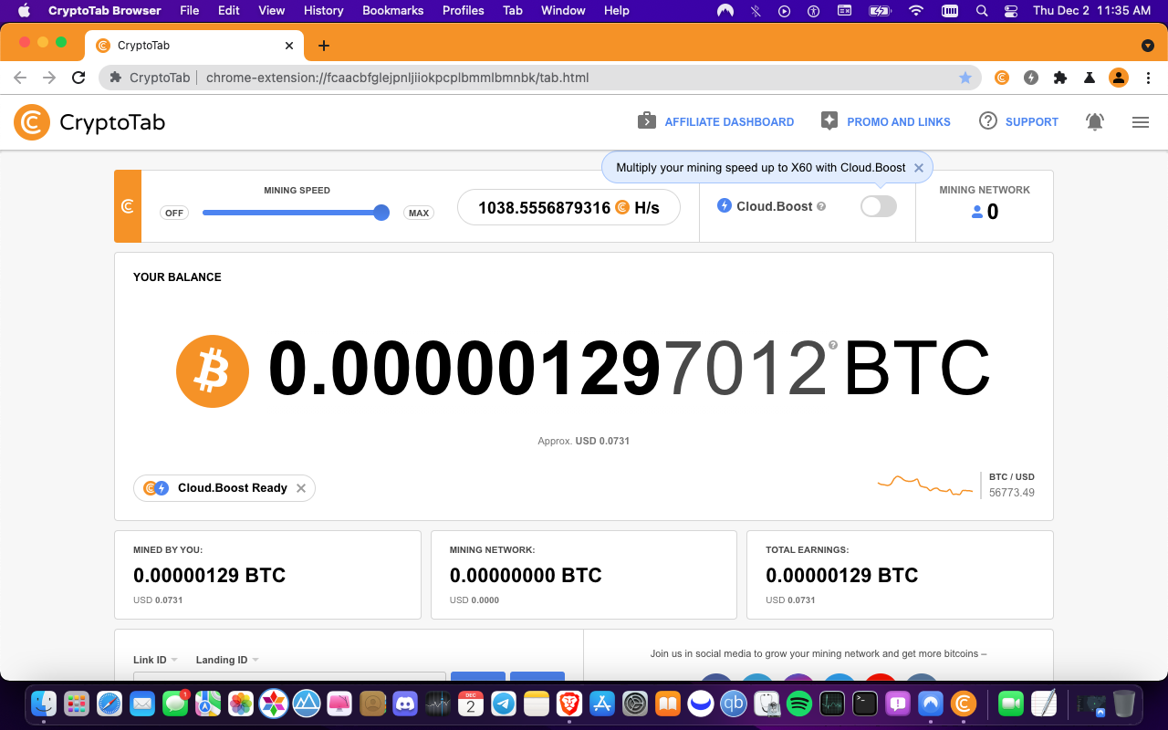 the bitcoin I've mined has been in a total of 5 days; and im up currently up to .00000145 BTC, or 0.0835 USD