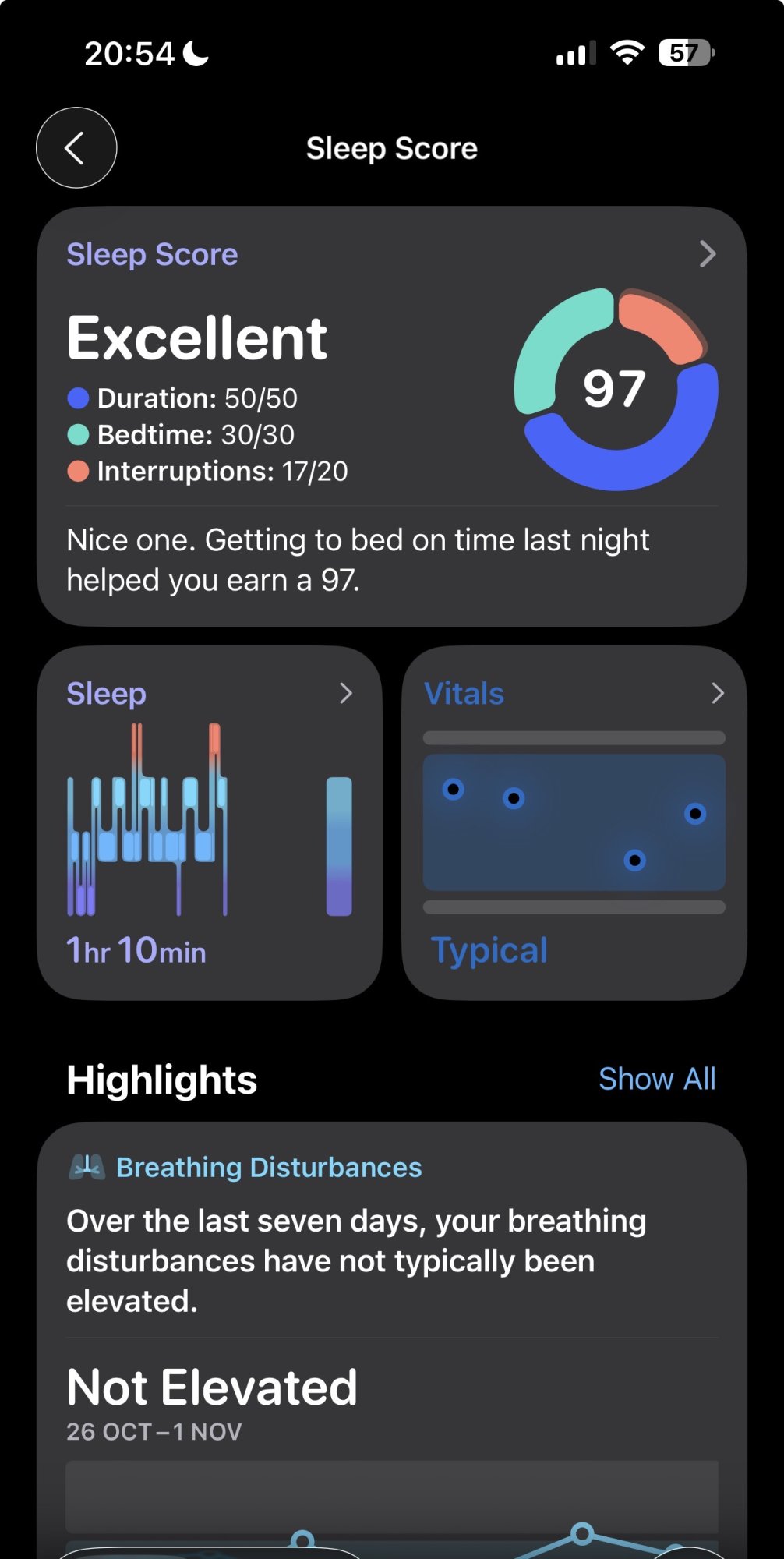 you slept of 1h 10 min and you get a score of 97? that is quite bizarre to be frank. unless I'm misinterpreting that number under "sleep" ...