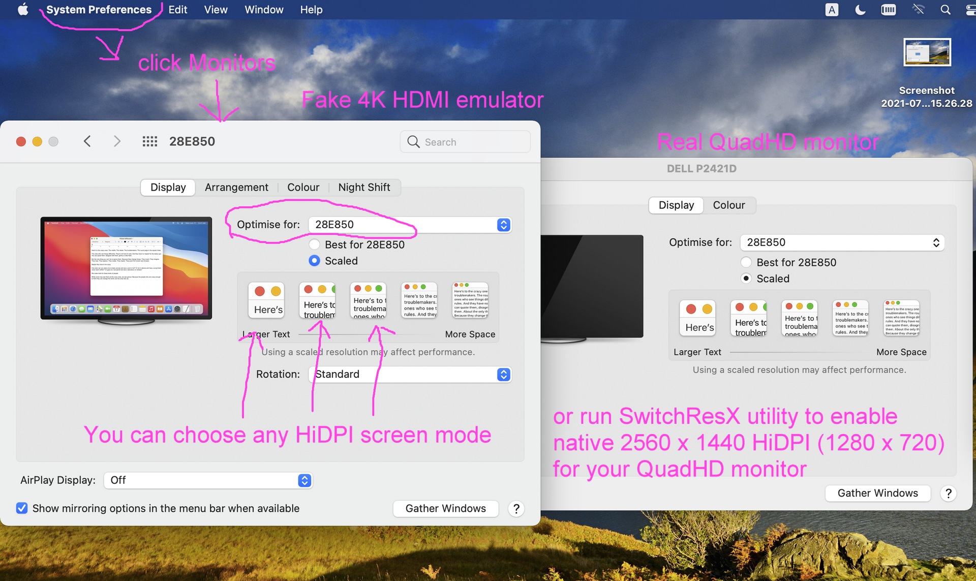 7. Now for this dummy 4K monitor enable any scaled HiDPI resolution. I could enable