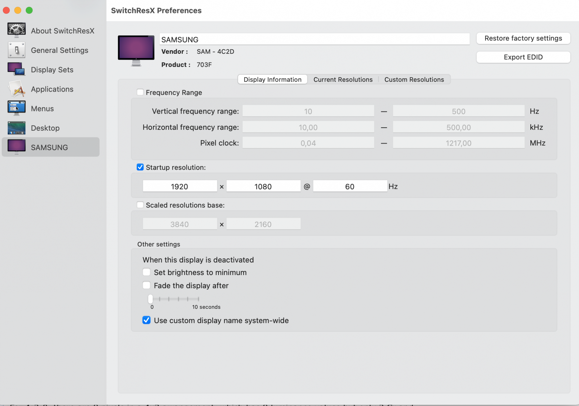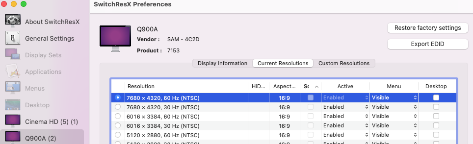 Nothing happens when I click these resolutions. I can’t even open them to see the details. SwitchResX shows a dialog box saying info not available.