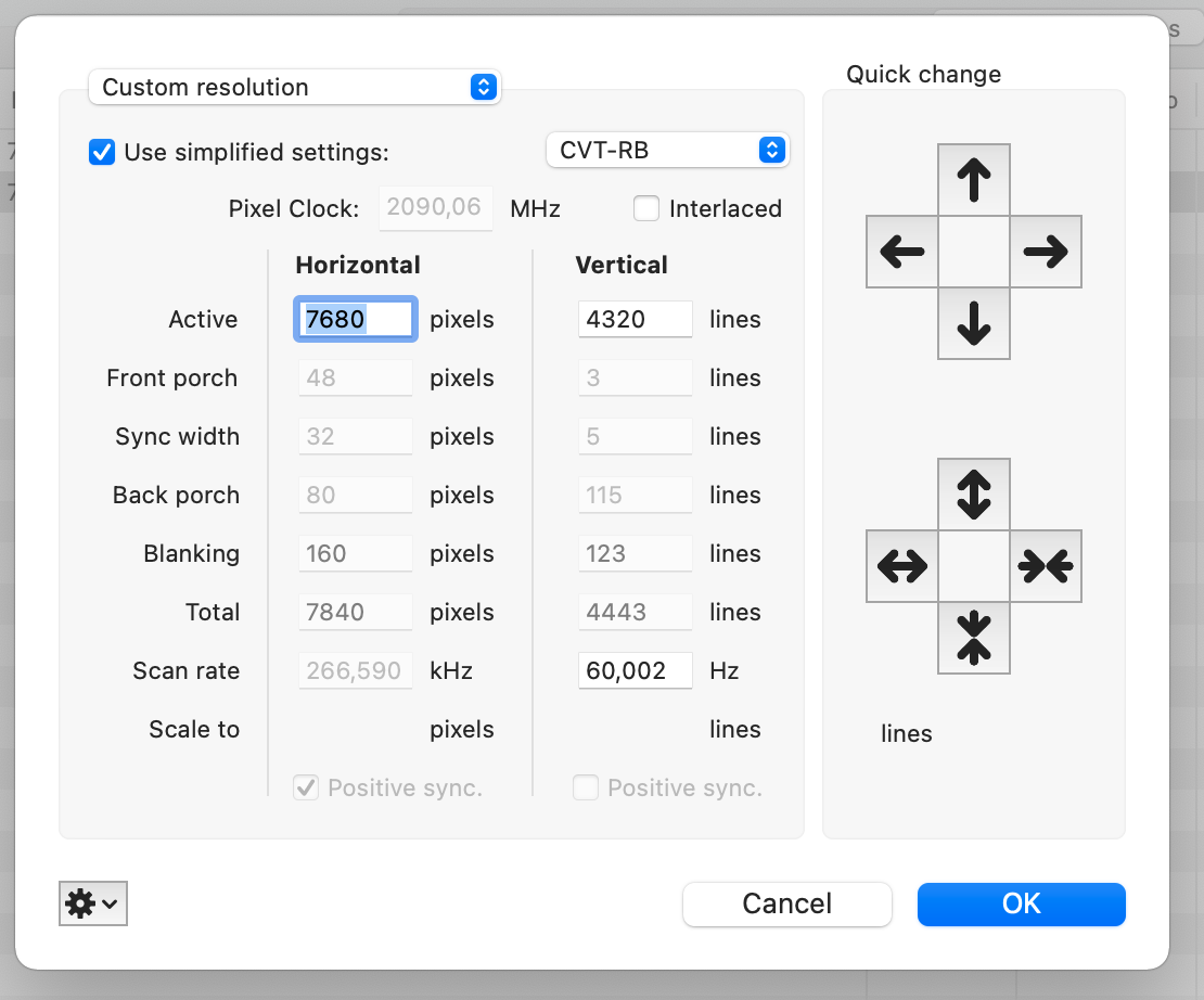 .. and it seams to create a bunch of non scaled resolutions incl 8k Under the current tab.