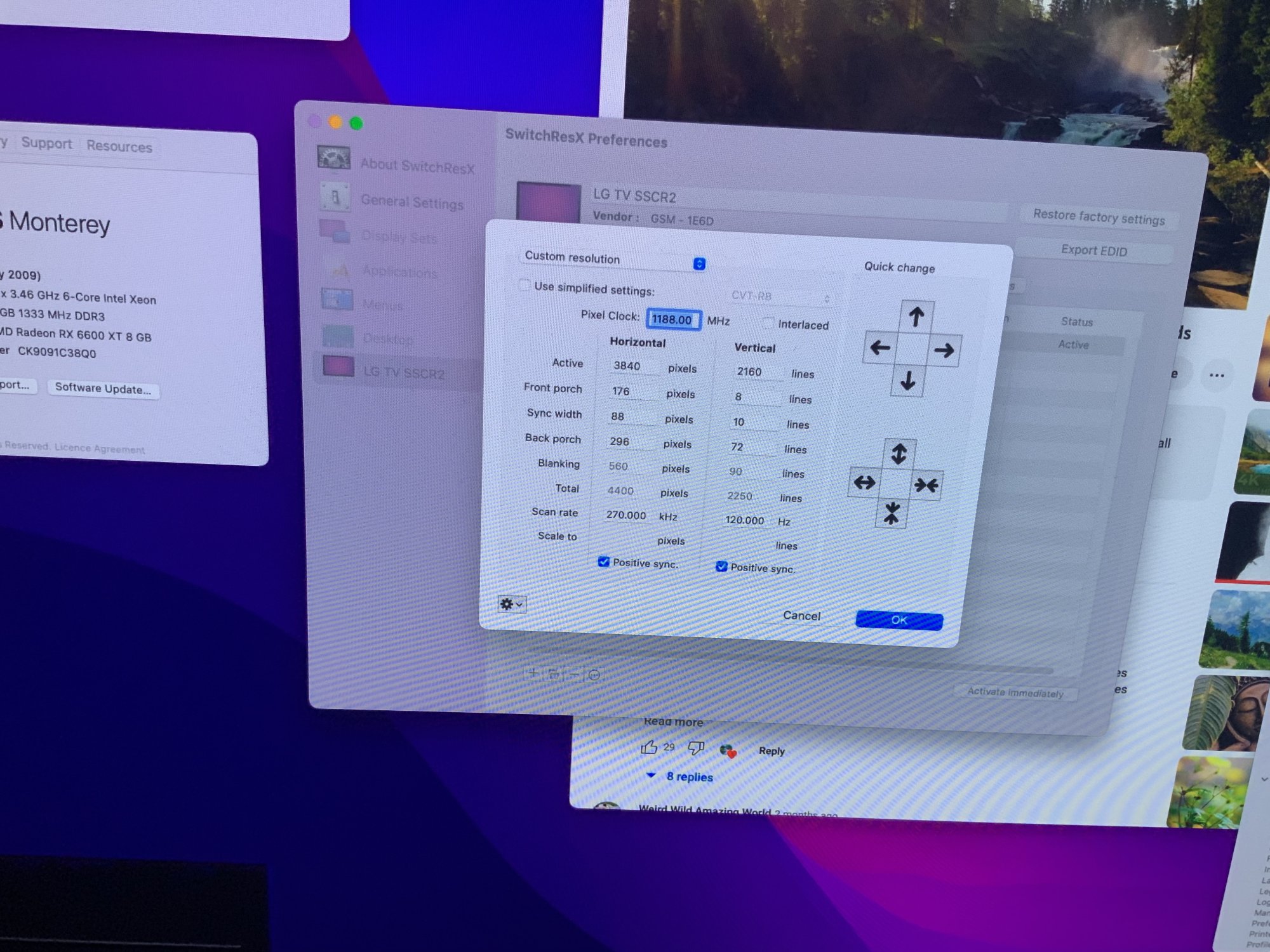 4K 120Hz YCBCR420 works fine on HDMI 2.0 though. With HDMI 2.1 you should be getting YCBCR444.4k 120 with sound! I plugged in a an active Club3D display port to HDMI adapter and then removed my 8k HDMI cable and plugged it into the HDMI 2.1 port on my GPU leaving the Club 3D still plugged in and VOILA! Sound through the TV via HDMI and 4k@120hz on a 2010 MacPro and RX6600XT!!!! FINALLY Tru Motion Scrolling on my 48inch OLED and Mac OS!!!!