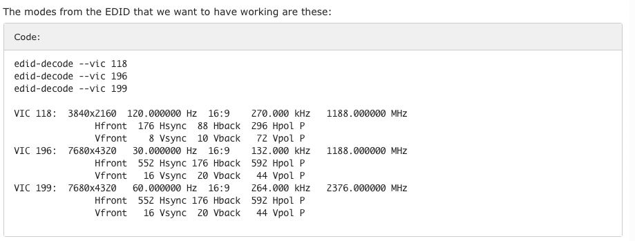 There's a 3840x4320 48Hz mode that doesn't match the 48Hz mode in the original display. The 8K30 mode also doesn't match the original and you're missing the 8K24 mode.