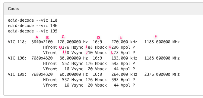 No need to remove your 4K CVT-RB tests. Also, add CVT-RB tests for 8K30 and 8K60.Ok so I *THINK* I entered at least one of these close to right and I *think* the 4k at 120hz might be working!?