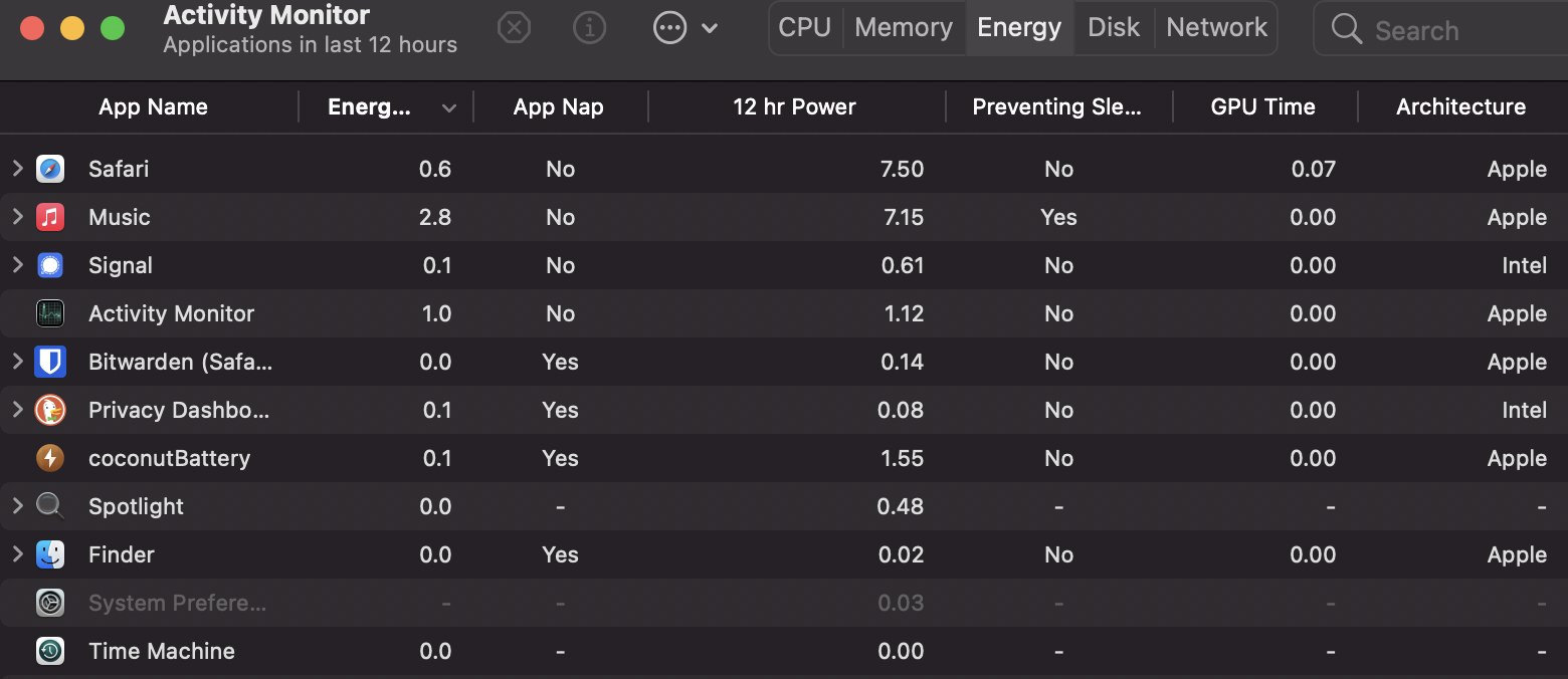 What appears troubling that I can't quite put my finger on is that Coconut Battery indicates that I'm discharging at nearly with 6 watts with only few applications open.
