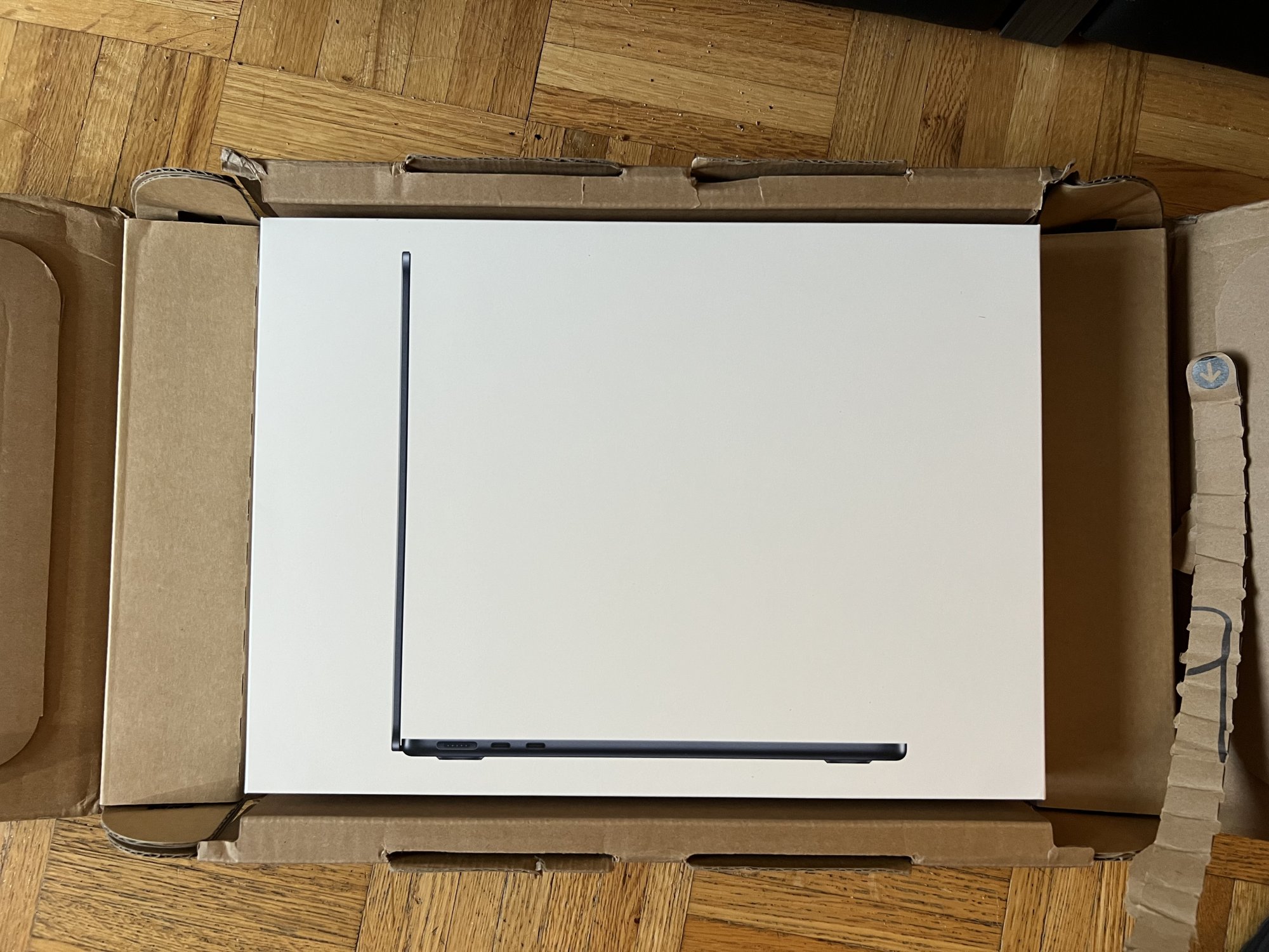 Received my M2 MBA (midnight/24GB/10 core/1TB) via FedEx from Apple. Box looked normal at first glance. Pulled the tab on the brown box and opened the two halves, no drama. Typical Apple unboxing... but...