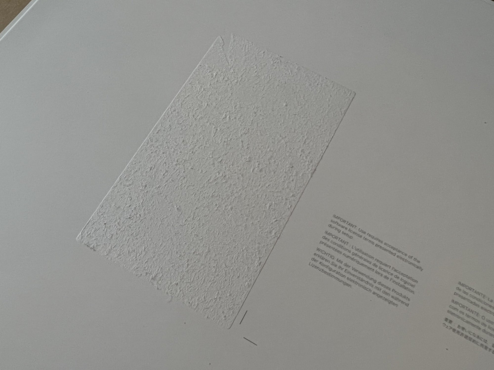 It took a while to notice that the label had been poorly peeled off the back of the white MBA box. Outside the box, looked like another label was peeled off.
