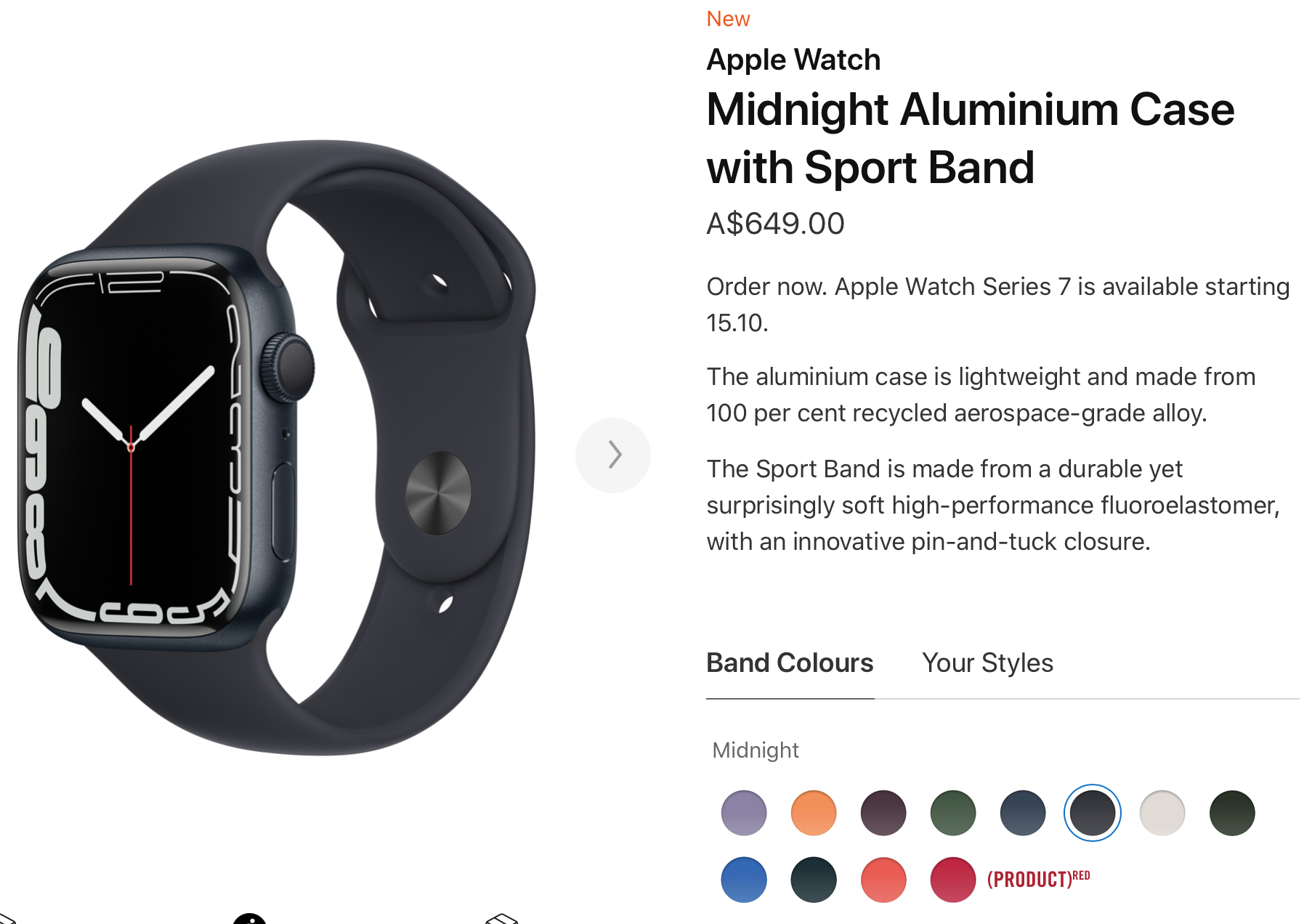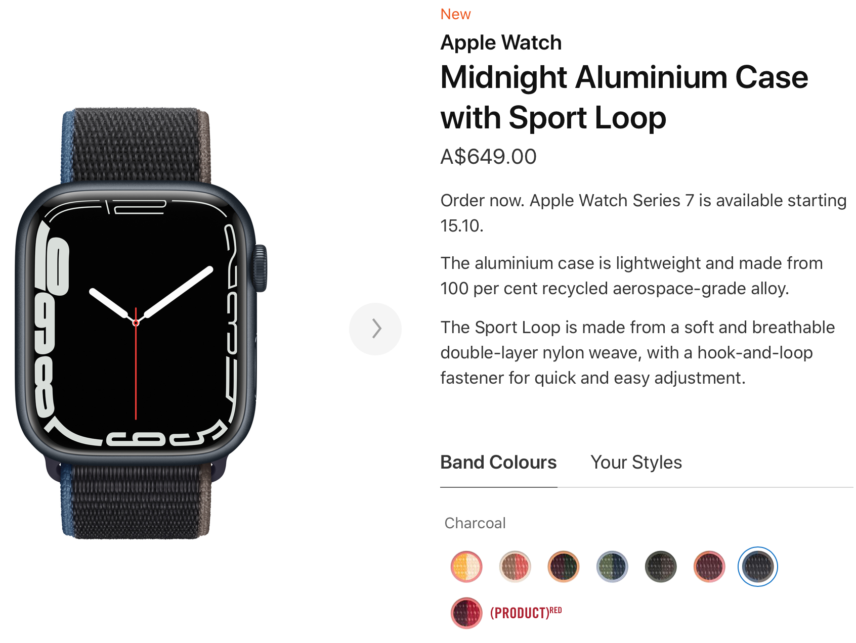 Buy the strap on eBay cheap as I never buy Apple genuine straps as their way overpriced and you can buy the same thing on eBay at a fraction of the cost. Apple just want to rip you off with their accessories to make their billions of dollars they do.I just went to place a pre-order for a gift for my father-in-law and was taken aback to discover that I cannot even order the cheapest case material (aluminium) in a space grey / charcoal / black colour. Instead, the darkest colour available in the aluminium is 'midnight', which is a blue. Moreover, my father-in-law is a mechanic and needs a black strap (to hide grubby marks etc) but the darkest sport strap available is the charcoal but it has blue edging that doesn't even match the midnight blue. What the? Anyway, I don't think he'd be keen on the midnight blue so no pre-order placed.