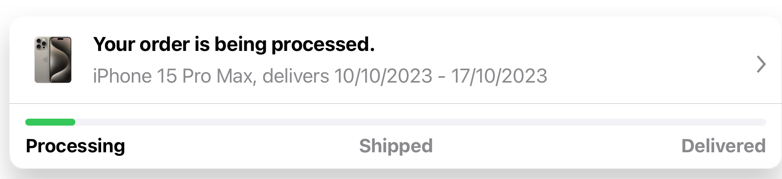 U.K. customer here, ordered at 1:21pm U.K. time once their site / Apple Store app finally came online for us UK-folks. 15 Pro Max 512GB Natural. Initially showed a delivery window of 27th Sept - 2nd Oct. By a day or 2 later, this had been pushed back to 2-9th Oct. Still showing as processing. Wasn’t able to get ANY Pro Max variant on the actual launch date, 22nd. I showed up to one of the major London Apple stores on Friday morning, and was standing outside at 8:02am as they opened, no Pro Max stock whatsoever. Even the corporate account manager for the firm I work for wasn’t able to secure a unit for me. Absolutely pathetic launch from Apple and I just don’t understand why their stock situation is so poor, especially for a £1,499 phone. Orders placed today for the same spec are now saying 15th November delivery! They know this date is coming every year. Why keep up the constant artificially-inflated demand tactics year after year? Any other U.K. customers in a similar boat with the 2-9th Oct delivery window?