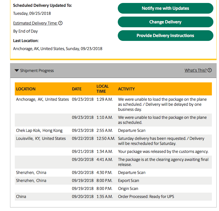 On Friday 9/21 morning, all my UPS status shows, "OUT OF DELIVERY at 8:41 AM"