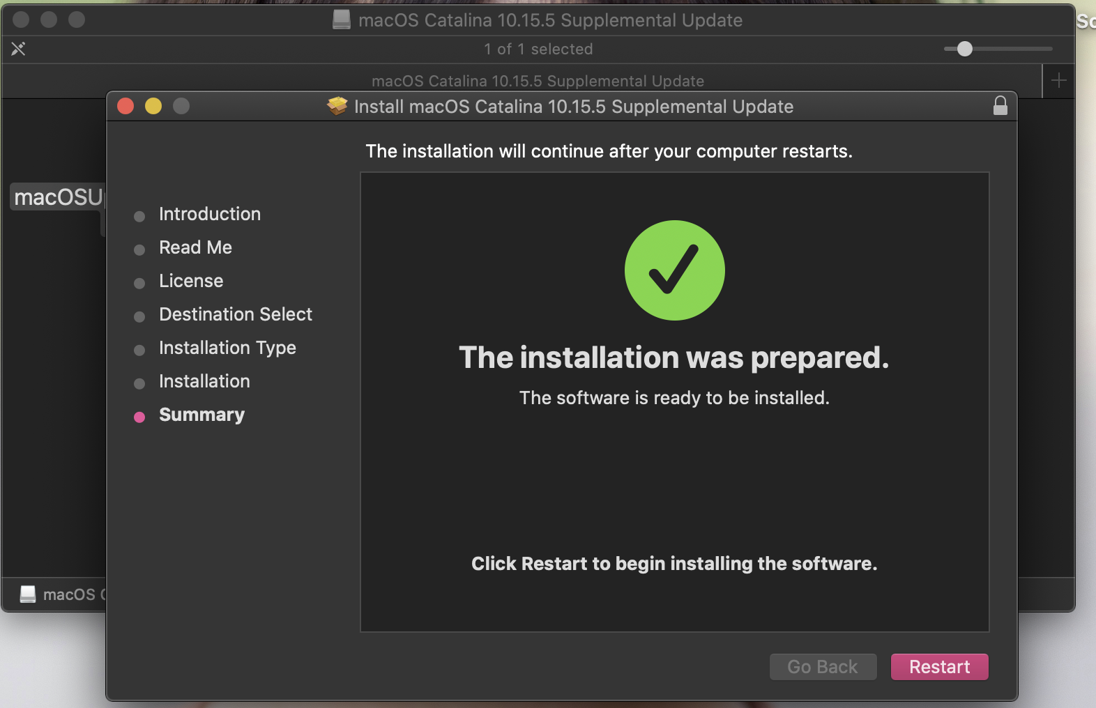So, I was unable to download and install the supplemental update (10.15.5) from system preferences. I then manually downloaded both the supplemental update and combo update from apple, however that didn't work either. I kept getting errors "The installation failed. An error occurred installing the update" and "request timed out".