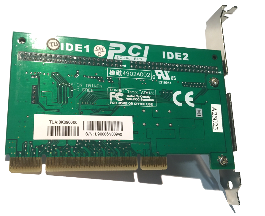 Thought OP request was for the Sonnet Tempo ATA133 and / or ATA100 cards? Mac version pictured here. (Whereas the PC version does not have the “M” identifier at the end of PDC20269 - on the Promise chip.)