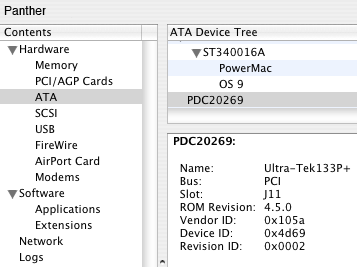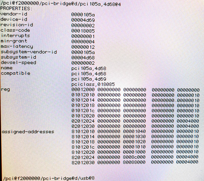 That really doesn't help, we really need a dump of the devices full Open Firmware .properties. Pretty easy on New World machines, but you'll need two Mac's with a serial connection to do it on an Old World machine.Panther & Tiger...