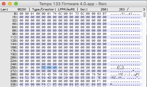 Joy!peffpwpc that an NDRV should have in the first 12 bytes.I have a Tempo 133 Firmware 4.0.app (for the Tempo Trio) It is similar to the other Tempo firmwares where it decompresses from a driver,FirmTek,MacOS,PowerPC property. I extracted part 2 of the firmware (the decompressed part) from memory in Open Firmware on my 8600 (I think I explained how to get the memory from Open Firmware elsewhere - basically just get a hex dump of the memory range used for the Open Firmware dictionary which also includes all the properties and buffers).Oddly the " Name" property " model" property and other properties built into the device tree by the ROM are not human readable as I've seen with every other FCODE ROM I've ever detoked, and those are the properties we need built into the device tree to get the Sonnet flashing utility to see the card and flash it.