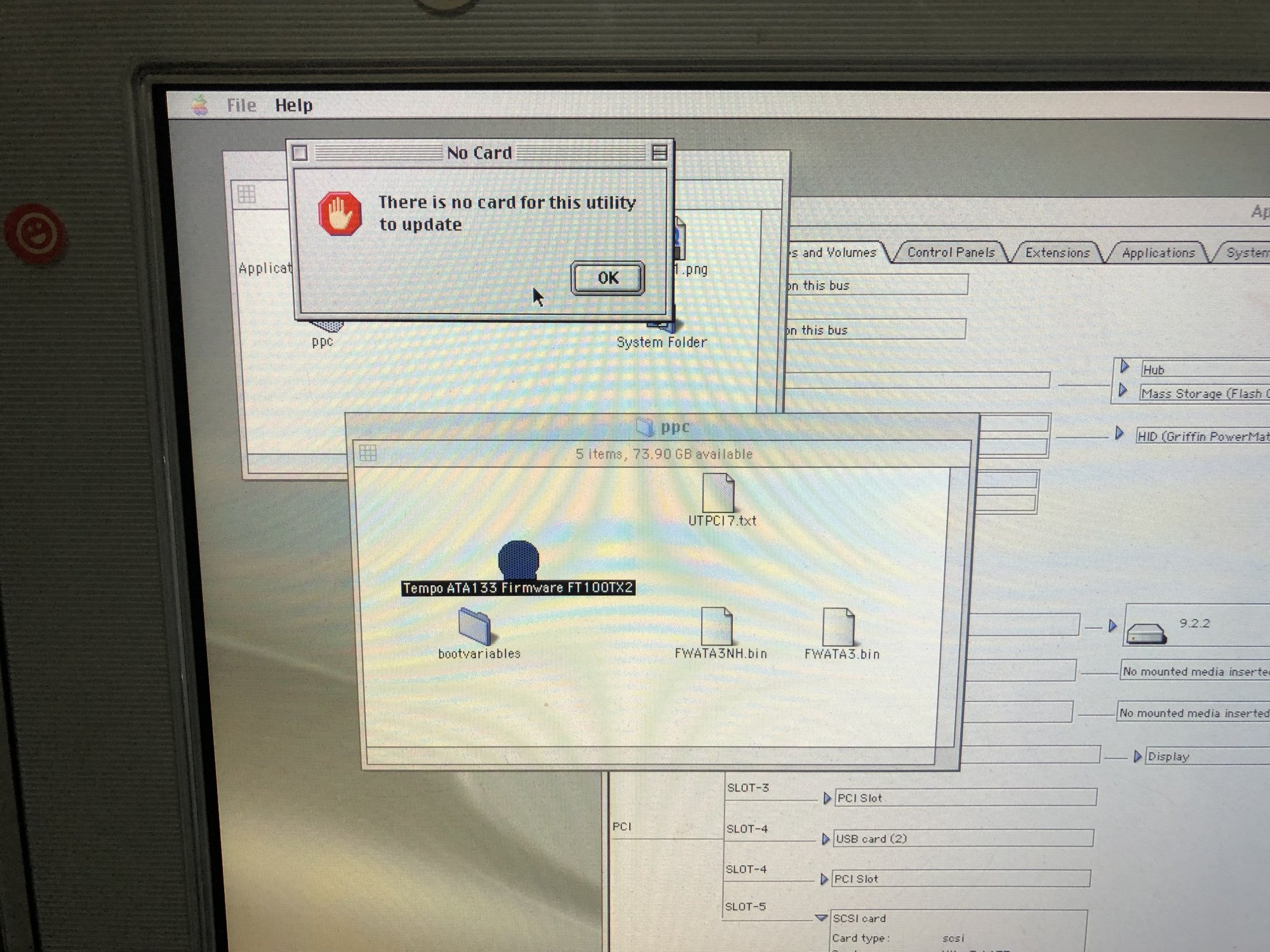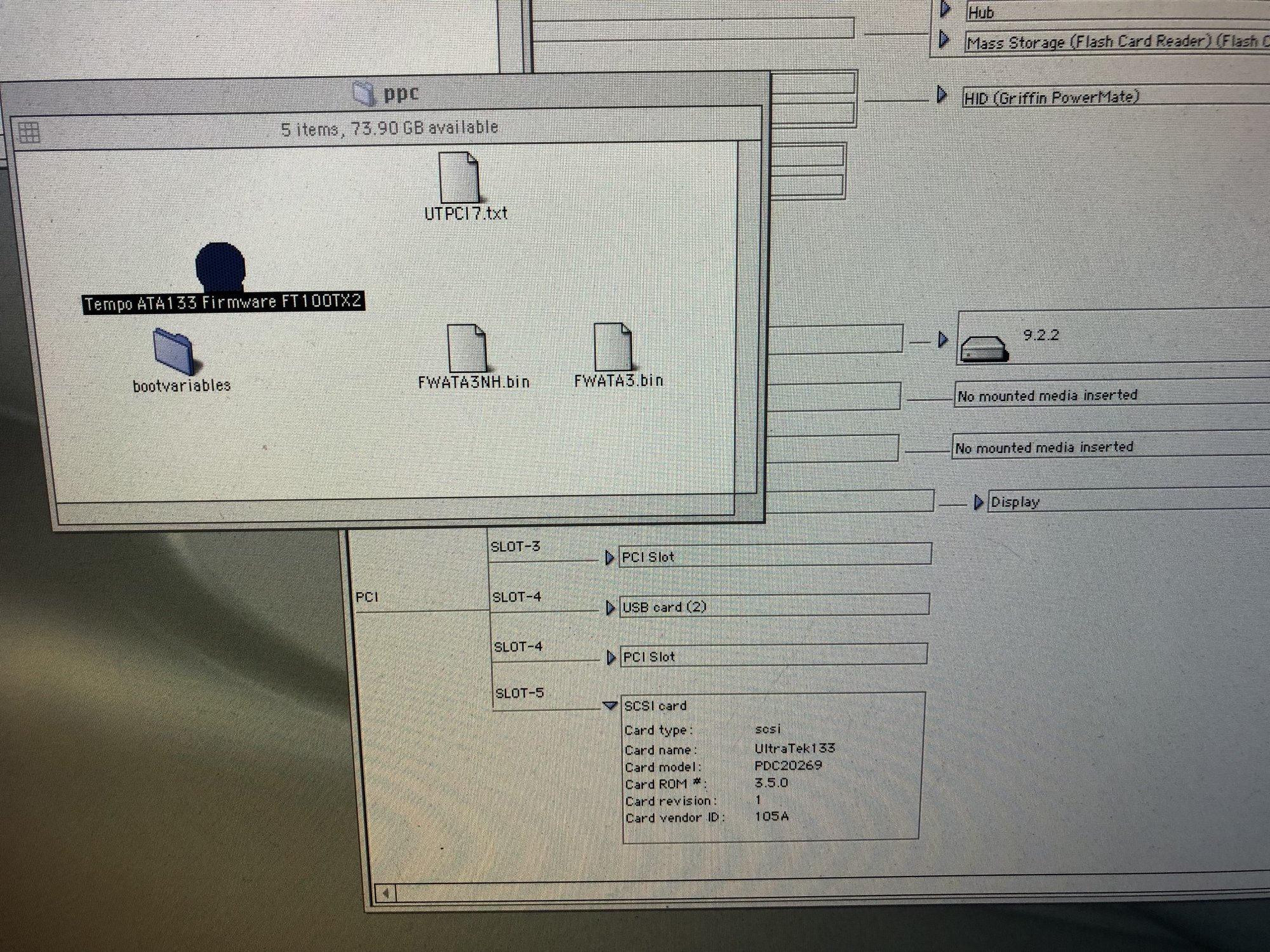 IDK, got me stumped......ok, set hd to master, it loaded the UTPCI7 file, booted into OS9, and when i try to flash the card, see attached pics