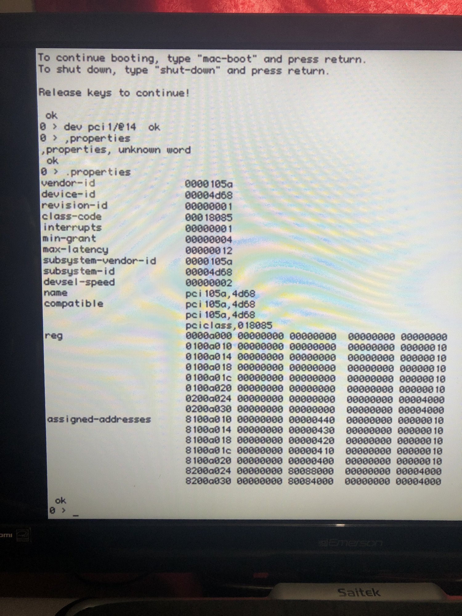 One the off chance you "reg" and "Assigned Addresses" properties are not the same on the QS:anything i can do here? resedit, open firmware?