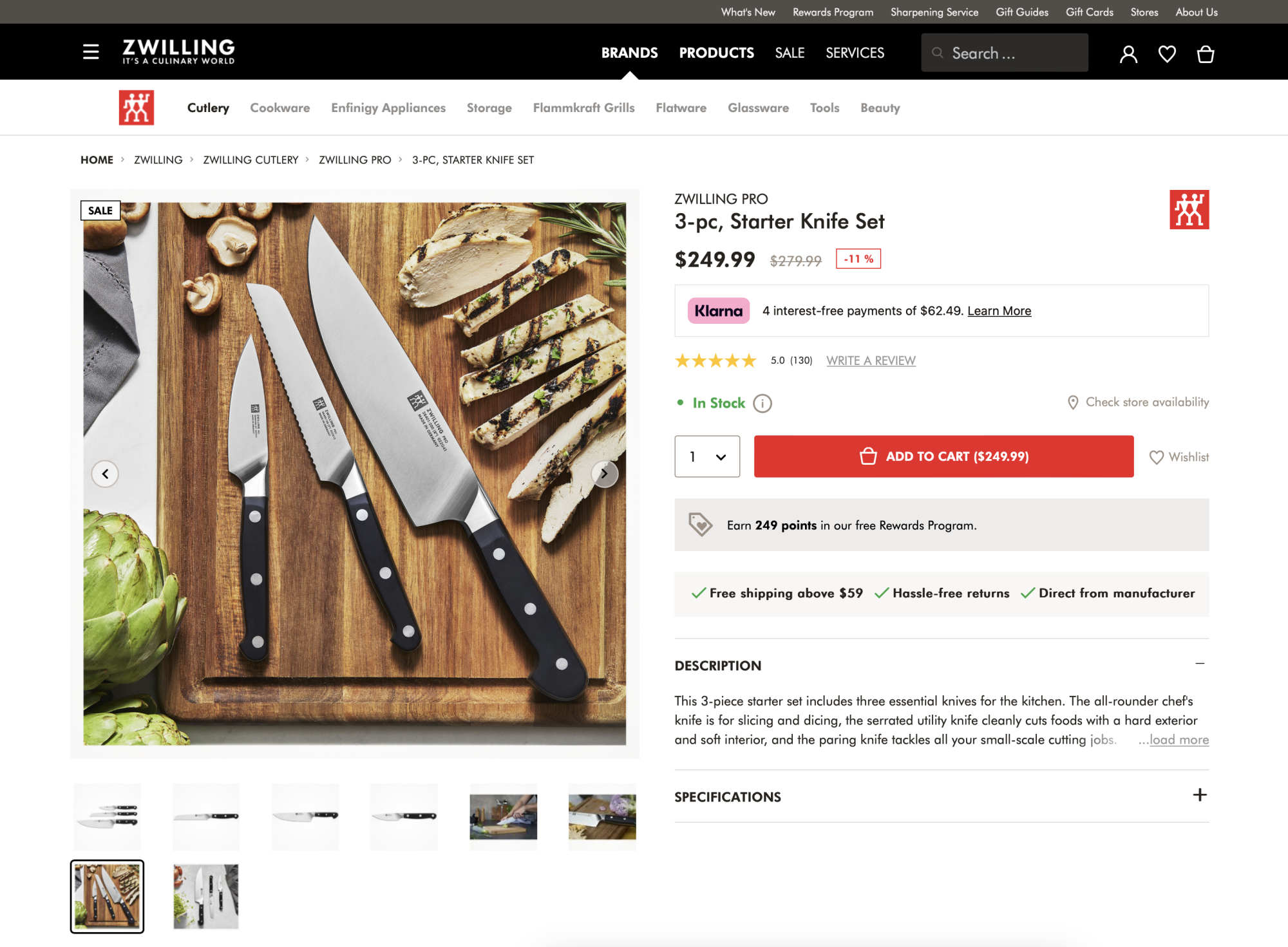 I should have pointed out it does this on Chrome, The page will not open on Firefox because I don't have Javascript enabled. I don't often use Firefox any more so I'll have to dig into its setting. On Safari the Zwilling page opens normally. I have not tried blowing Chrome out and reloading.