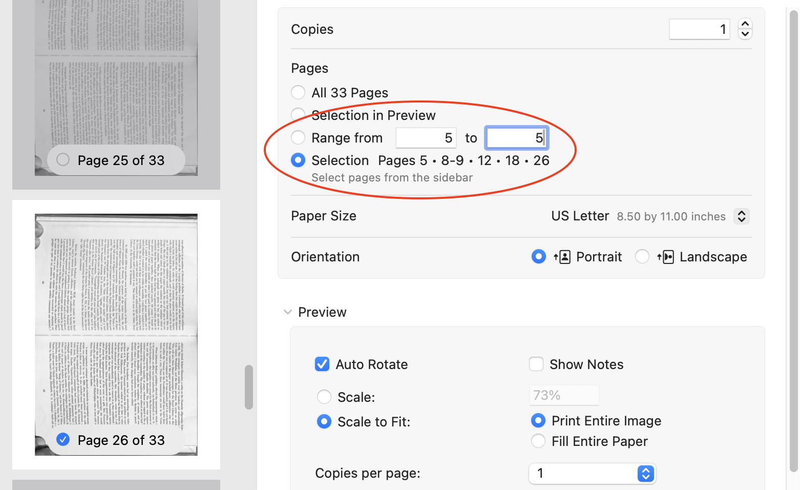 In this particular case, the blame is undeniably on Apple, as it never provided a human-oriented option to print non-consecutive page ranges in its Print dialog.