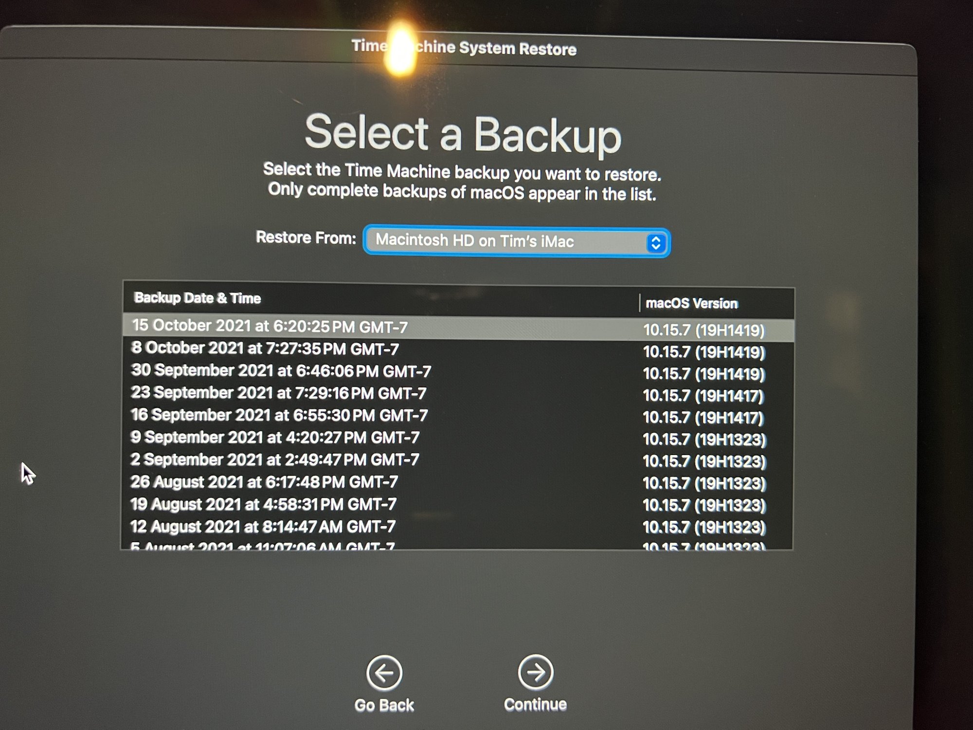 Only complete backups of macOS appear in the list?? But I do hourly backups since 2020!!