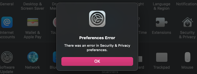 Can't open 'Security & Privacy' pane in System Preferences anymore with yesterdays latest beta.