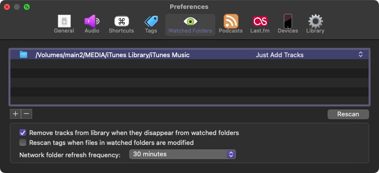 But I got sick of manually importing music on EVERY MAC! All I wanted was to update one folder on my network that every Mac could see/access. iTunes couldn't do it (or I just didn't know how to make it automatic (without a bunch of scripts)).