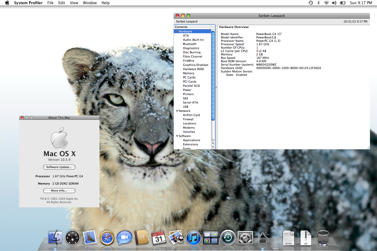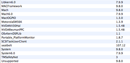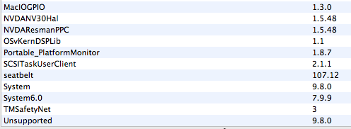 So I've got an idea. Do me a favor and go into System Profiler on a standard Leopard system (on the 1.25 PowerBook), and then click on the 'Extensions' tab under the 'Software' category. If you can, please copy / paste the results here, and then do the same running Sorbet. Afterward, we'll compare the two sheets and see if there's anything 10.5.8 is using that's missing in 10.5.9.
