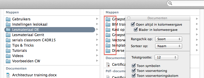 I prefer my Finder windows in column view, sorted by kind and then by name.