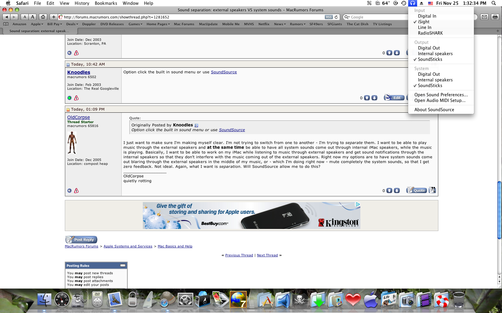 Problem: when I'm playing music through my external speakers, especially at a bit of a louder volume, I must be very careful with what I do on my iMac, because all the system sounds, such as emptying trash, come through my external speakers at huge volume, and it's quite jarring, not to mention interferes with the music.