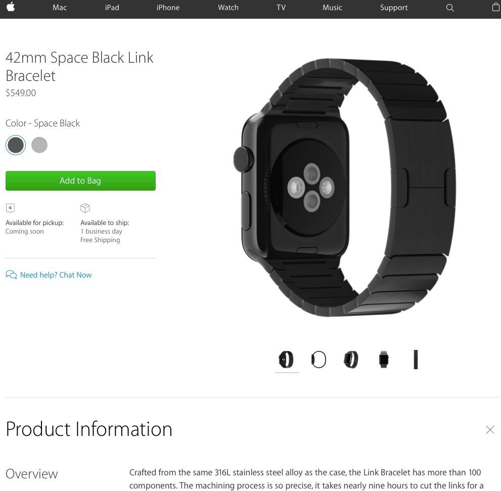 Did you guys notice the Space Black Link Bracelet is now available from Apple for $549 (38mm and 42mm)? Still out of my price range for a Sport Watch band.