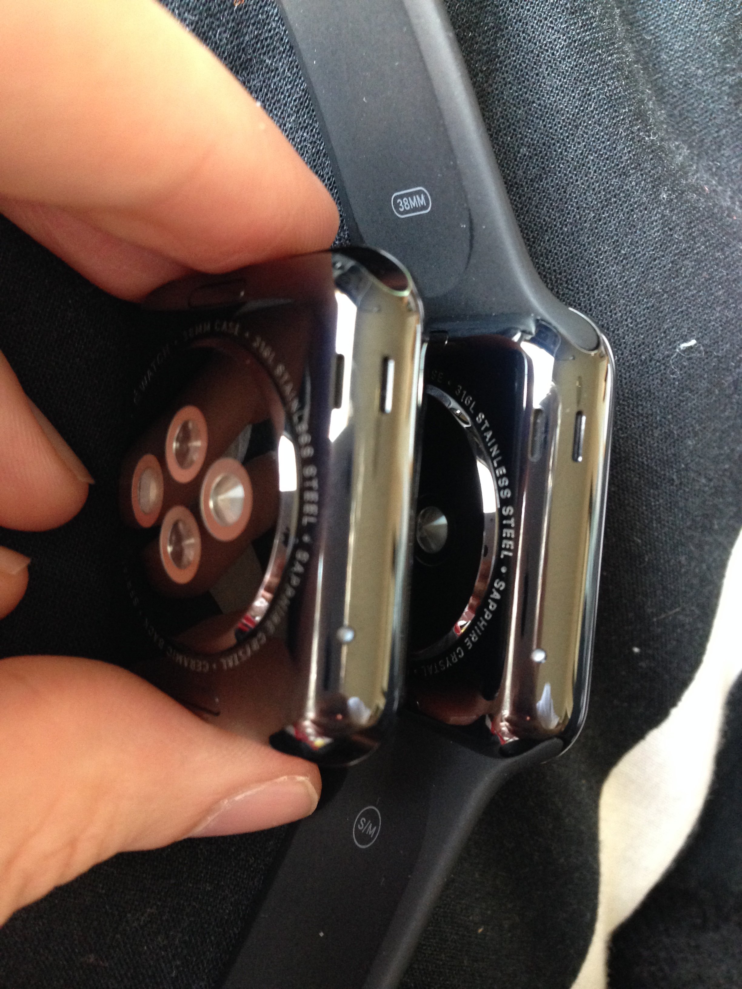 How strange. I've never seen this before. And I actually have multiple stainless Apple Watch models for comparison, and none of them have what your photograph indicates. Unless there something Apple is doing differently or they changed something in the manufacturing process, I have no idea why it would look the way it does. As small as that whole is, it's actually annoying to see the white versus having it being blacked out or with mesh intact.