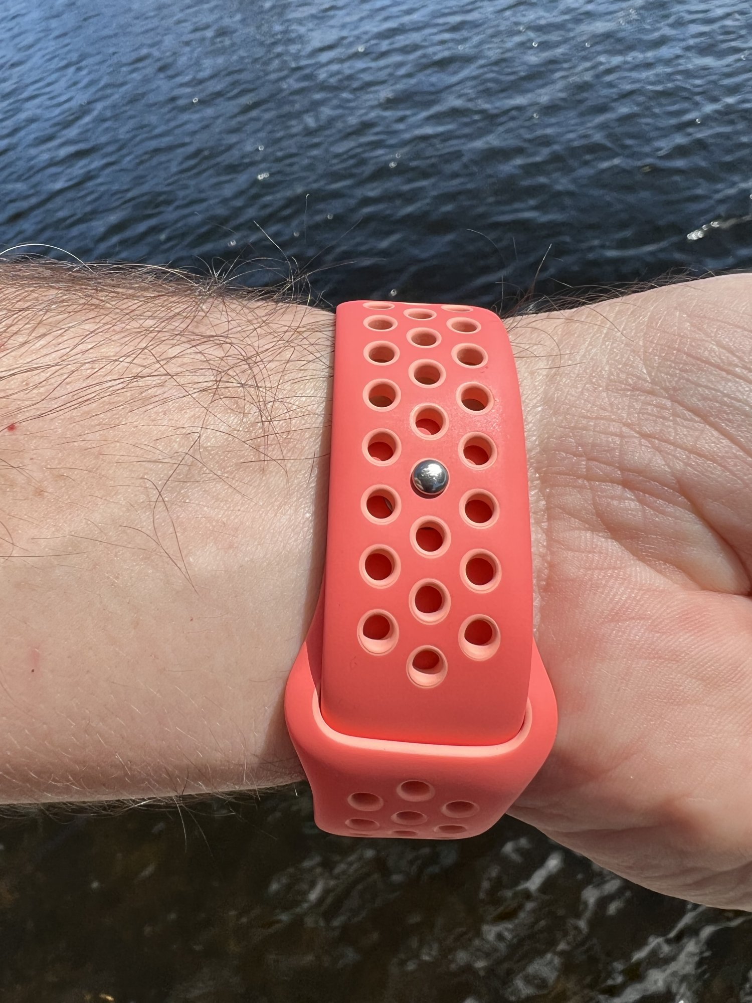 Also wearing either a blue or red, agreed re. your thoughts w/ them & also curious about your questions as I don't swim or shower w/ mine.Agreed on all counts.