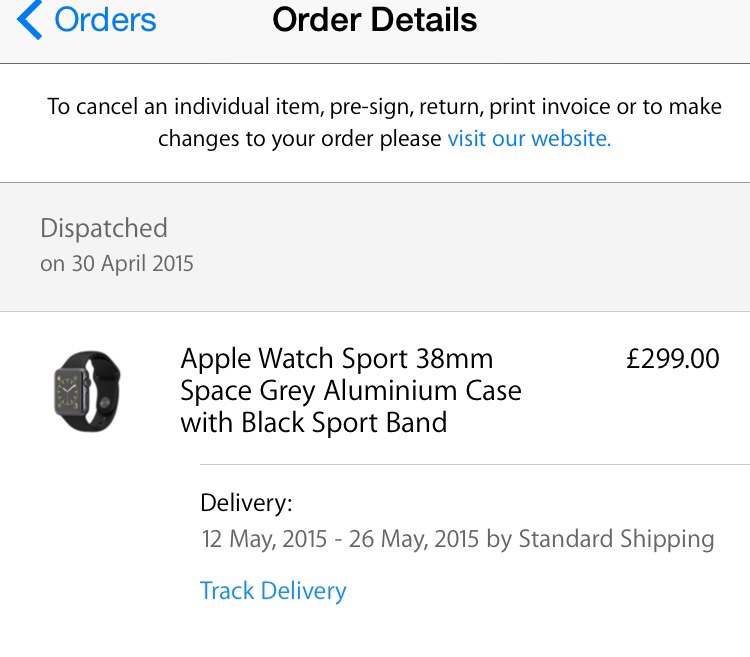 05:xx now showing as SHIPPED! Scheduled to arrive tomorrow. According to the serial number showing in my Apple Profile, the watch was manufactured Week 17. Fresh off the presses indeed!![]()
