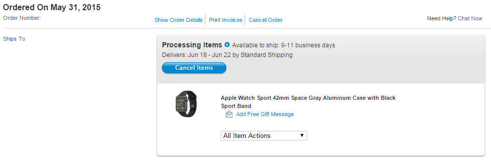 Most people will get their watch earlier than estimated by Apple. Good luck with yours.Ordered mine on June 8th. Won't expect for it to ship for the next 2-3 weeks as estimated by Apple.