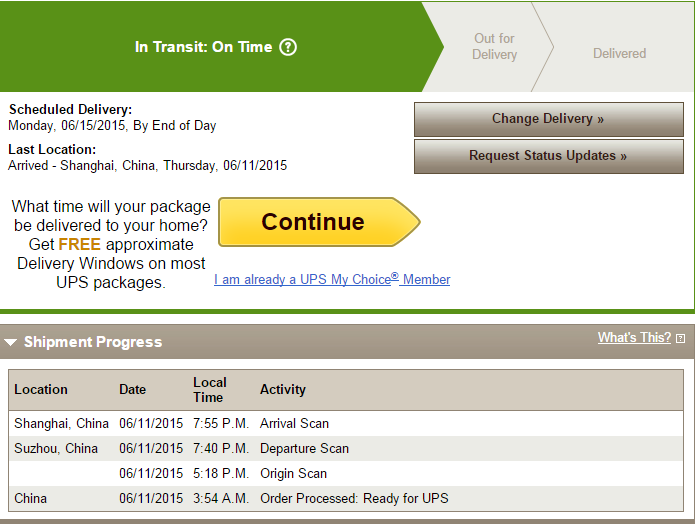 I'm still wondering how mine could just appear from Ontario, CA without coming from China(at least not on the UPS tracking). It was shipped yesterday, and arrives today. Not bad, not bad. June 1st order.