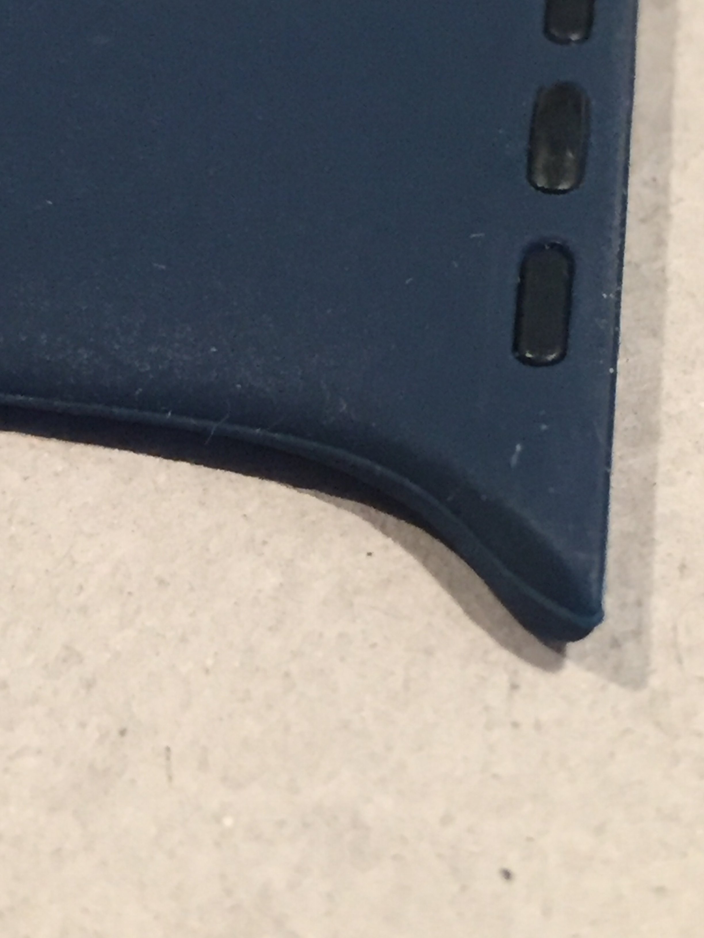 2.) There is some leftover mold flashing on the edges of the band. Barely noticeable by itself, but when held side by side with an OEM Apple strap, its definitely there.