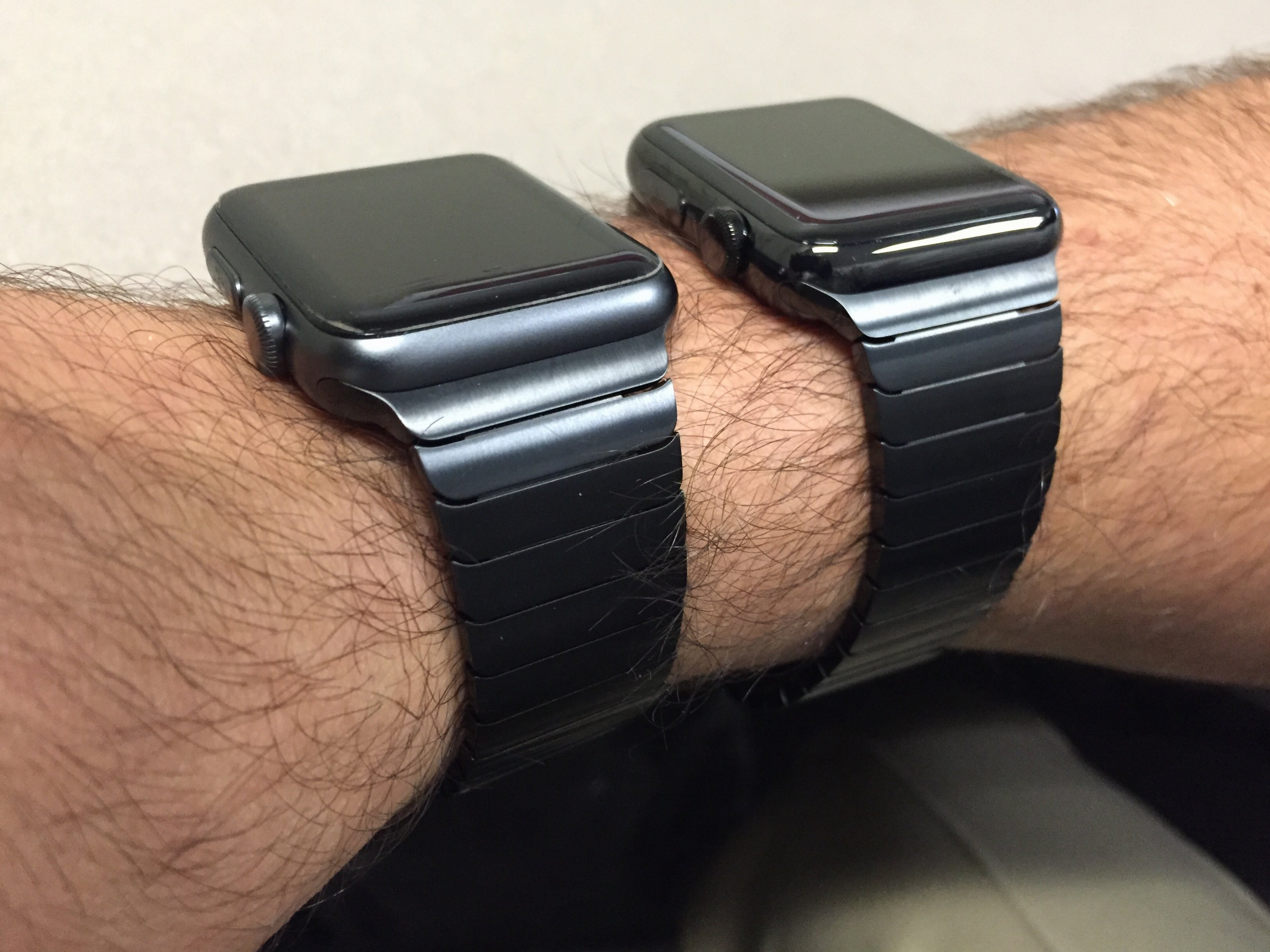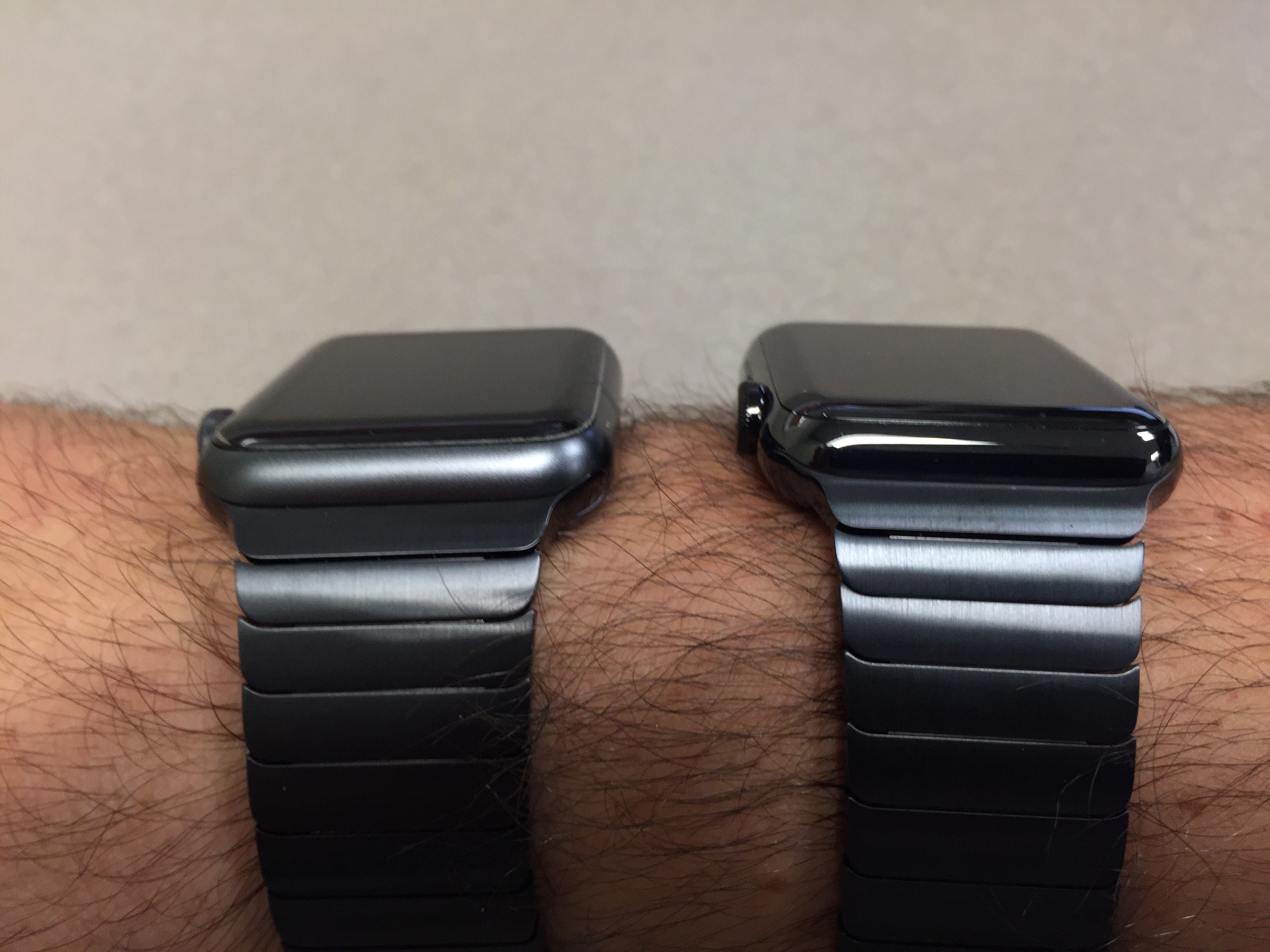 Left is space grey watch and right is space black SS watch: