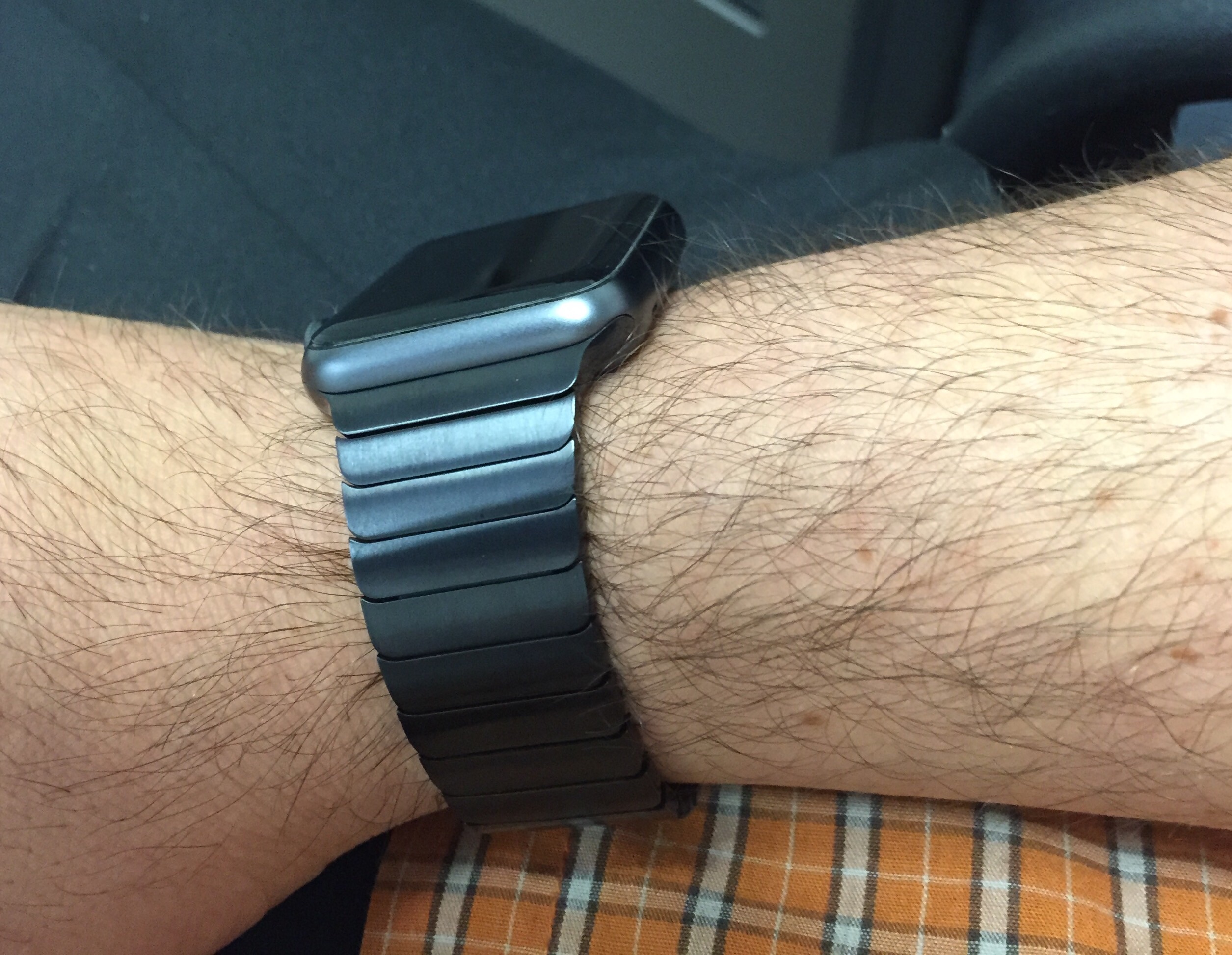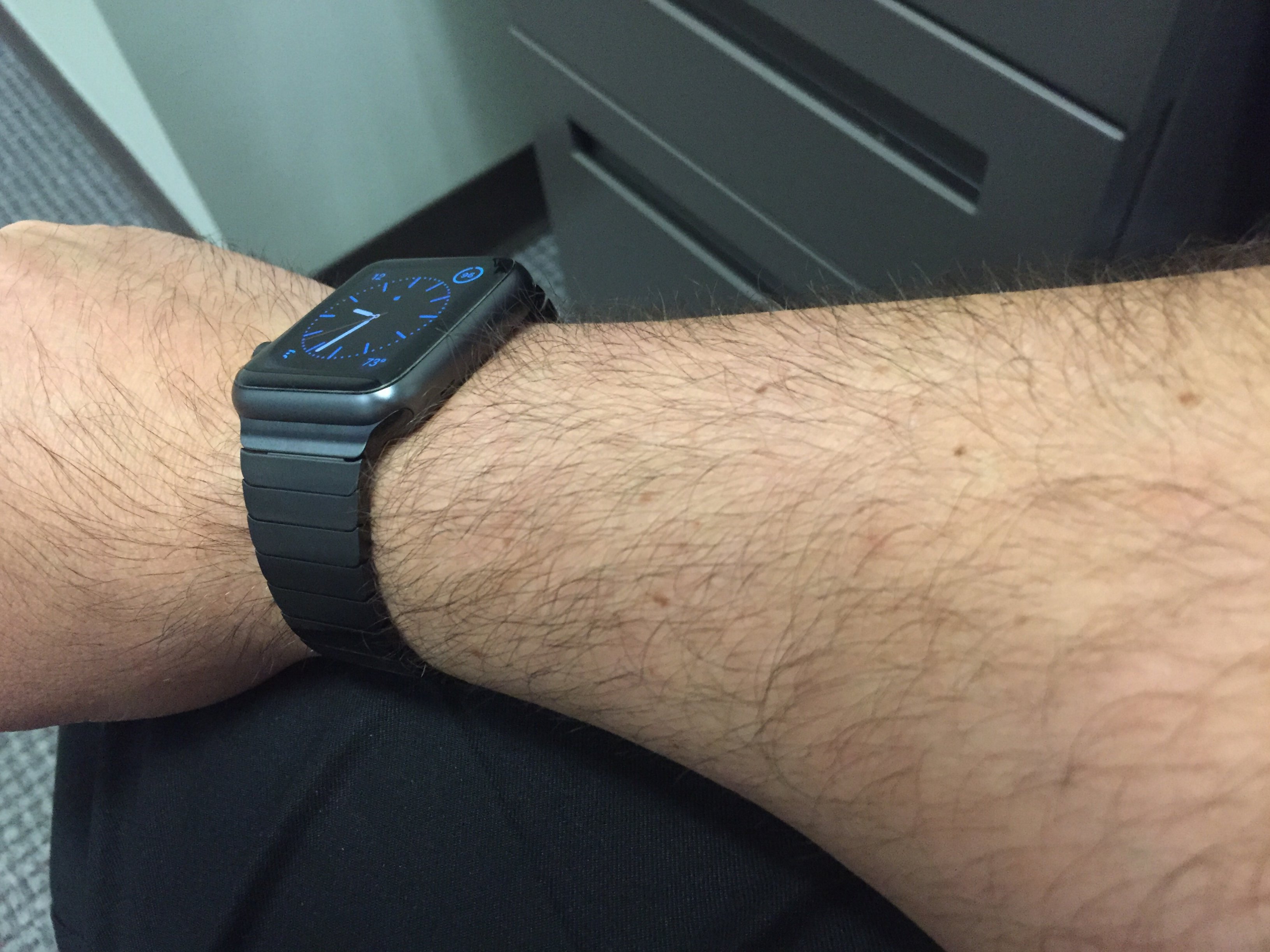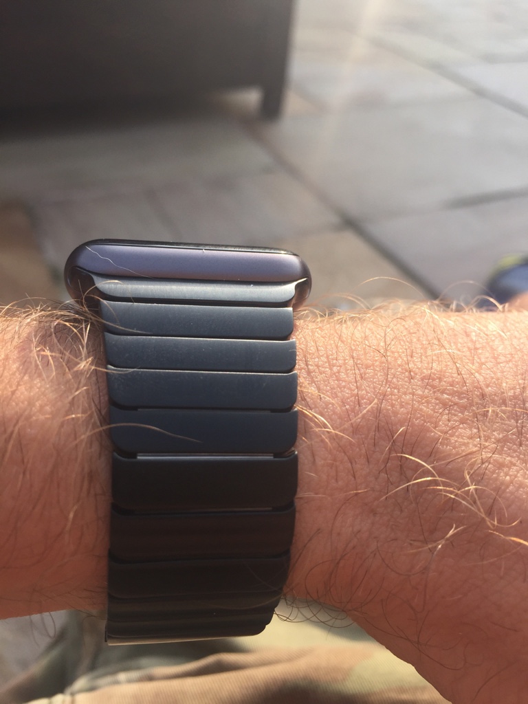 View attachment 576965 I have a space black link bracelet on my space grey sport watch. I swap the band multiple times a day (take off to put sport band on before working out and put back on after working out). I've been doing this for two months now and I don't have a single mark on my watch near where the bands slide in, so I'm not really sure what people are fretting about earlier in the thread...