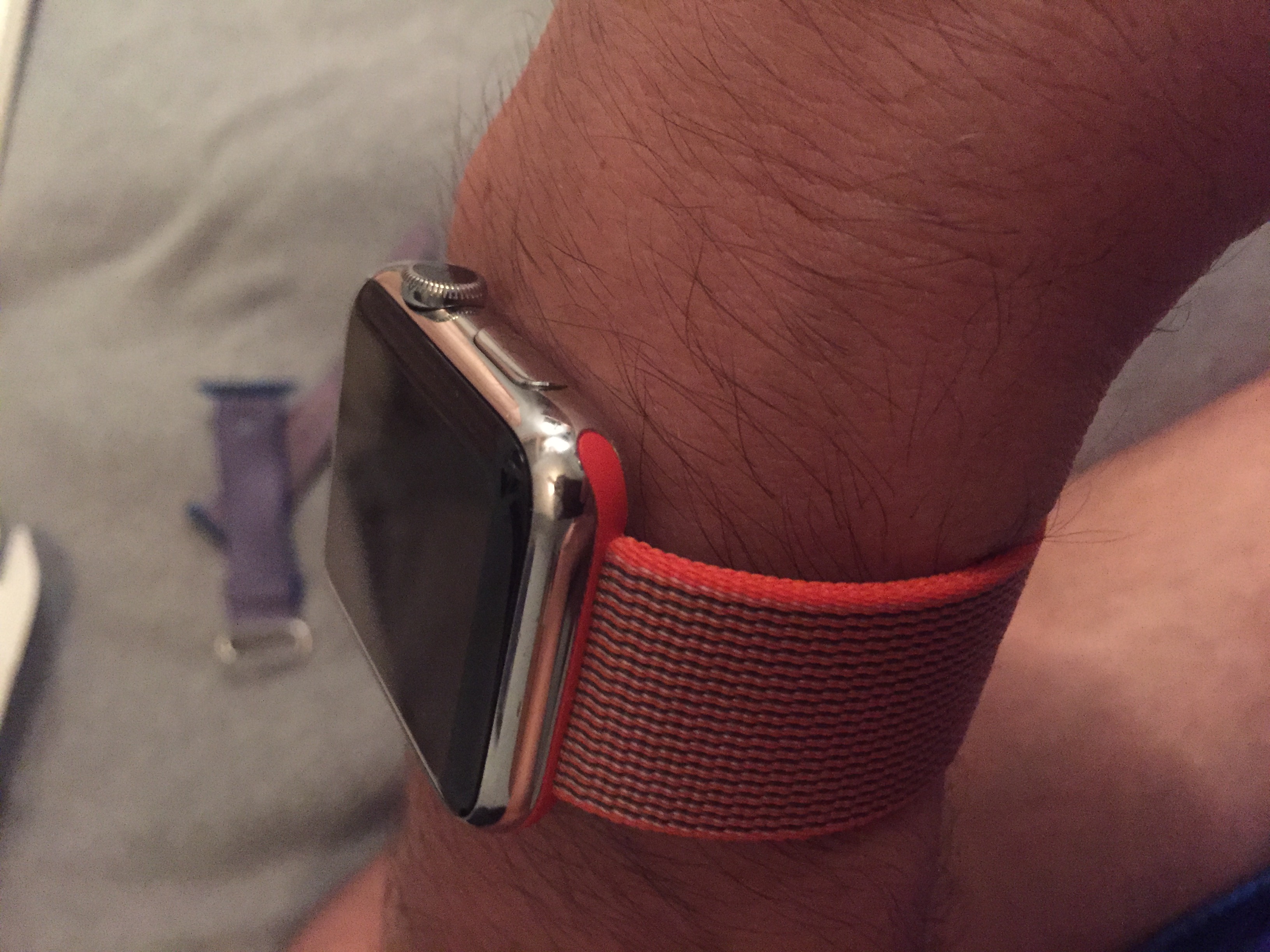 I've ordered the SS with white sports band and got the midnight blue leather loop and Milanese loop second hand. But don't have any bright colours yet.
