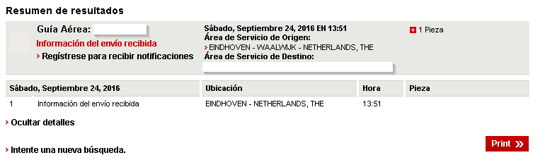 Área de Servicio de Origen: EINDHOVEN - WAALWIJK - NETHERLANDS, THE