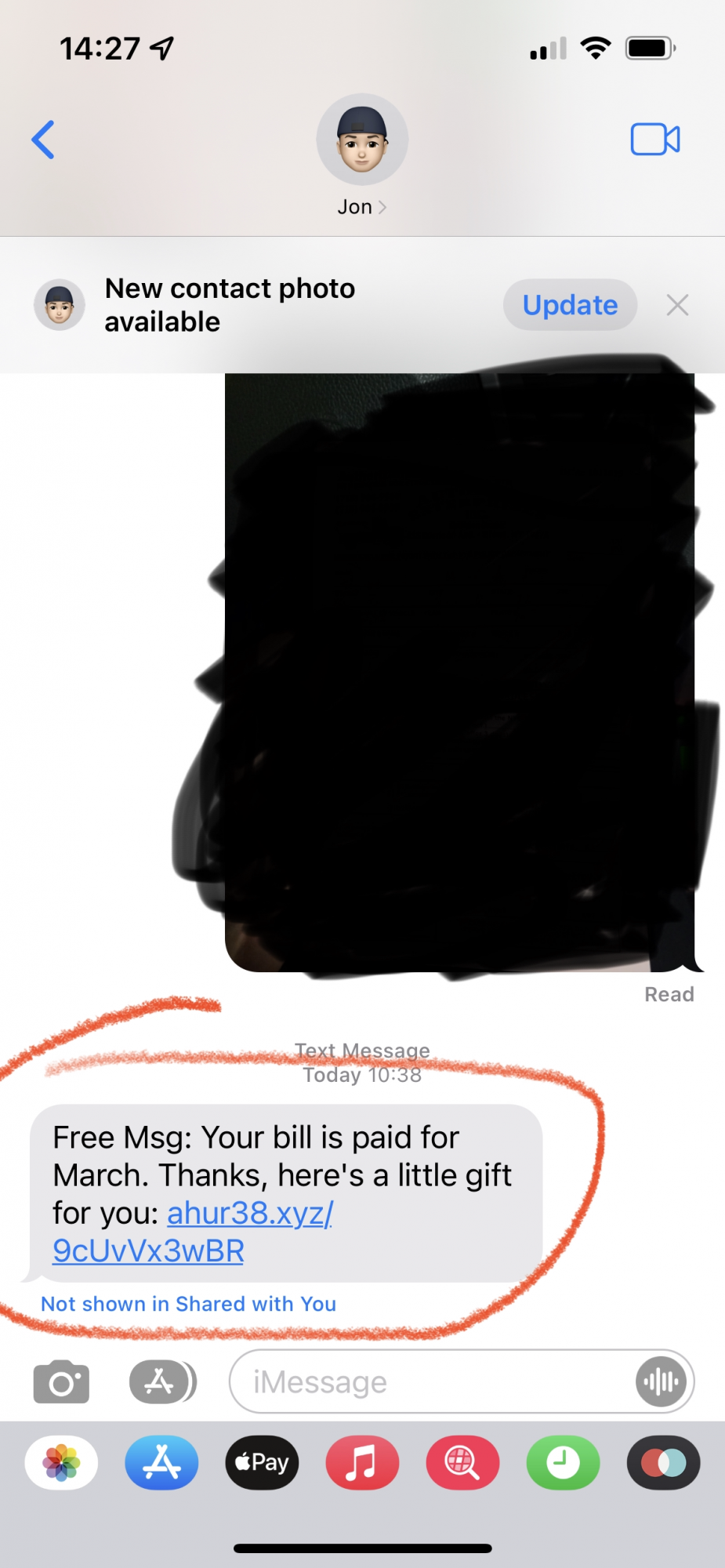 It doesn't. See links above, the current wave of "Your bill is paid" messages is a targeted attack on Verizon customers.I don't think it has anything to do with iOS 15 though.