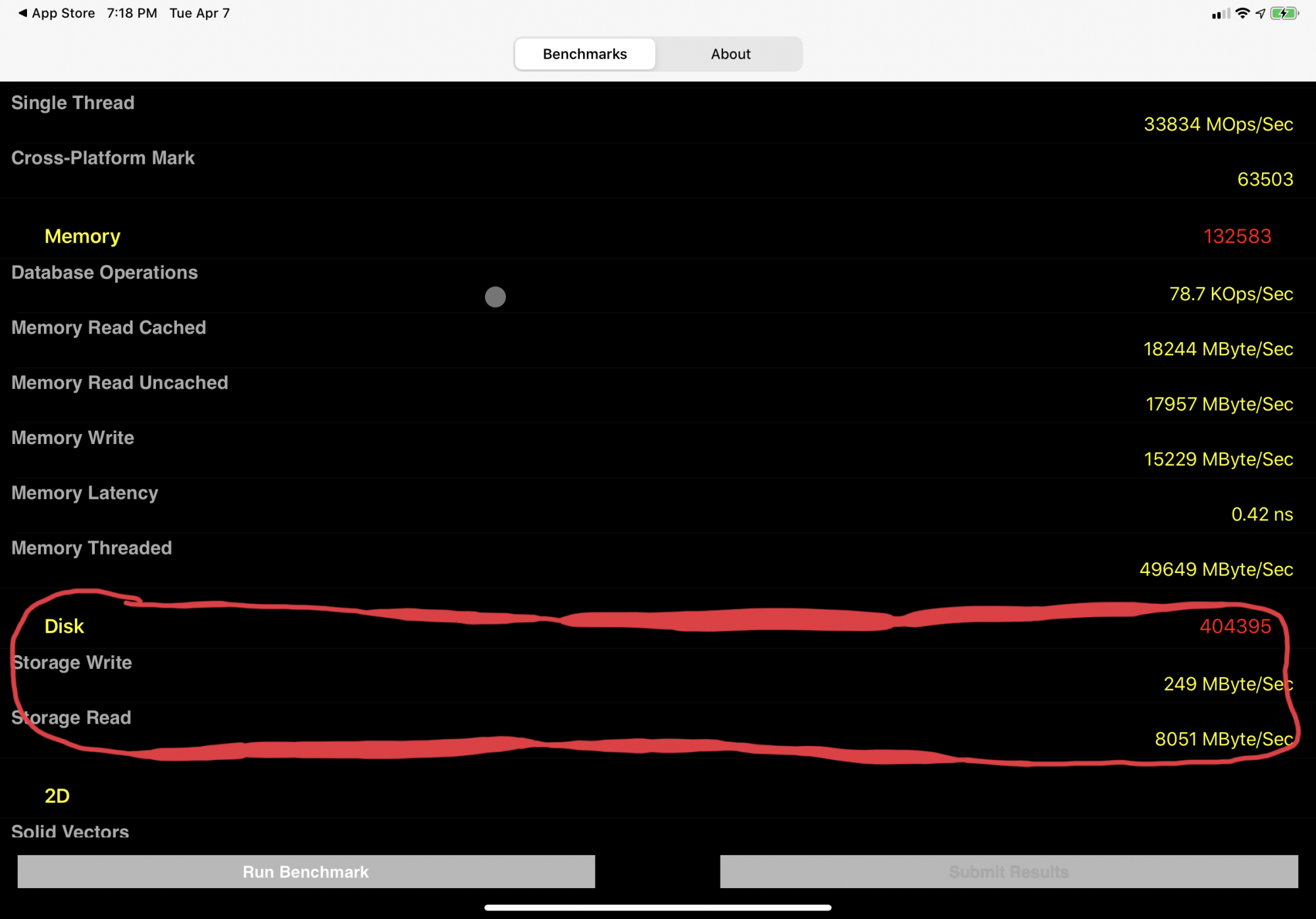 That 8000 is unrealistically high likely due to RAM caching of a very small data set.I ran a speedtest for the SSD on the iPad Pro 2020 12.9": I got 8476/310 read/write using the "Performancetest Mobile" App. Has anyone compared these speeds to the 2018 model to see if the SSD was updated?
