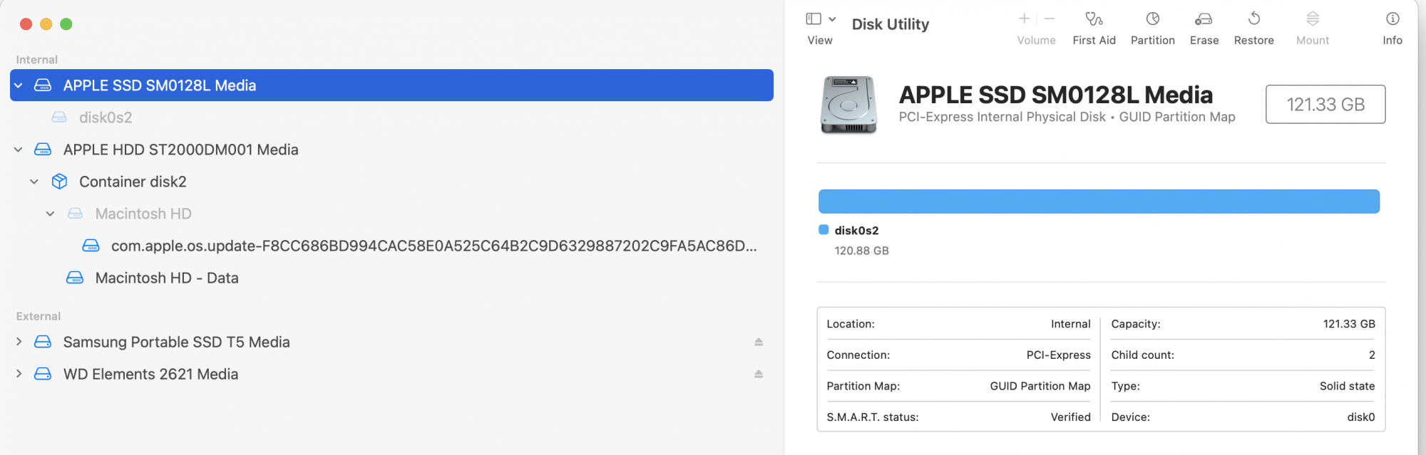 In May my hard drive died on my 2019 27" iMac, I was running Mojave at the time. After trying to create a bootable SSD to no avail, I finally took it in to Apple store and they replaced the 2 TB hard drive. After getting it back it came loaded w Big Sur. It was incredibly slow. I assumed this was Big Sur related and spent much time trying to streamline things. An Apple senior advisor thought it was a split fusion drive. In disk repair you can see the 128GB portion but the second one under that is grayed out & says not mounted. In About this Mac under storage it only shows Macintosh HD. I think that used to say Fusion drive but if it was split shouldn't there be 2 drives shown?