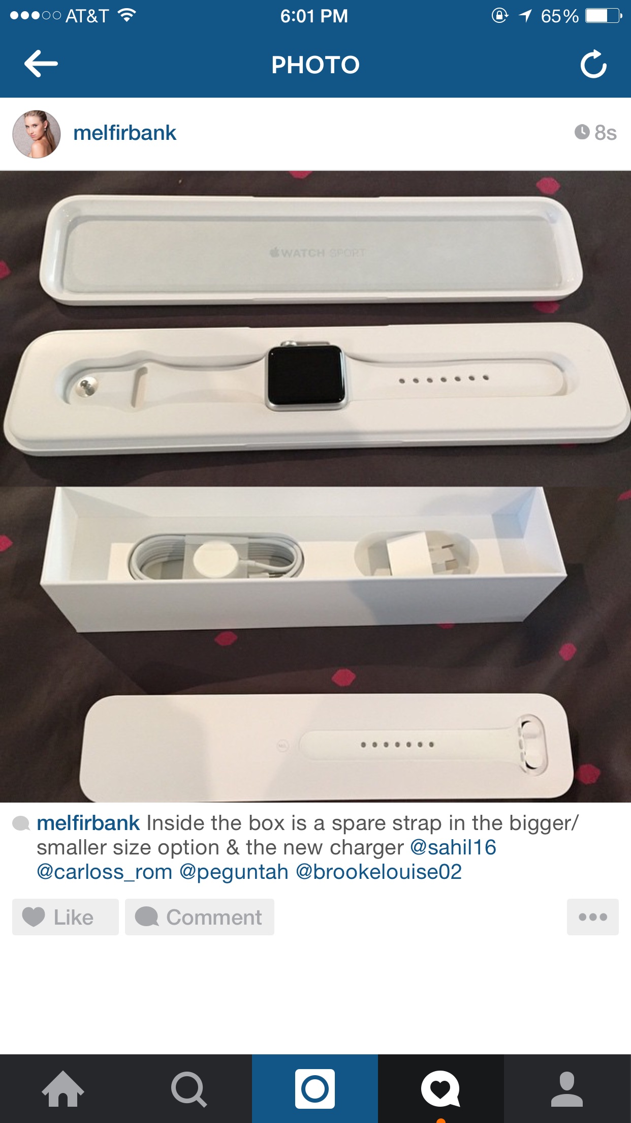 Yeah there have been some pictures from when people went to their try on appointments. The box is the same shape as the SS model box but is leather with color matching microfiber on the inside, much like an iPhone case. Case is color matched to the ordered band from what I have seen (cannot confirm for the red modern buckle). The case doubles as a charger and has a Lightning Cable connector at the back for plugging it in.