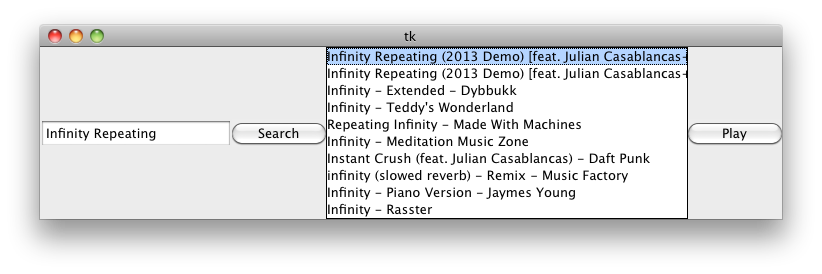 Currently, I've only implemented what you see in the picture (search songs and play them). If there is demand, I can possibly write a much nicer GUI with much more functionality.