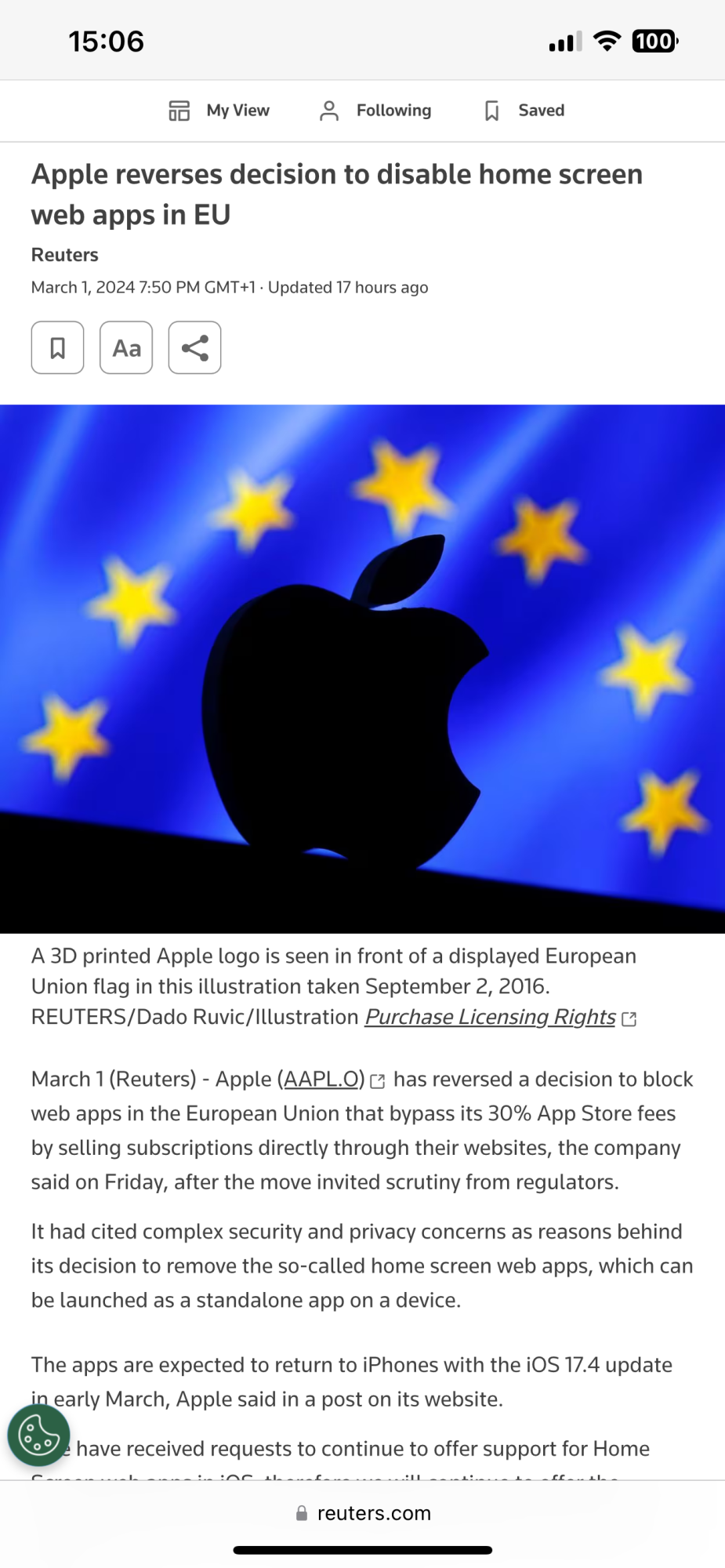 So once the DMA is completely implemented, Apple can no longer compete? Thank you for agreeing with me and a host of others. Mac is not locked down and hence could not compete with Windows. Once iOS is no longer locked down, I guess it will go the Mac way. That must be your fear?
