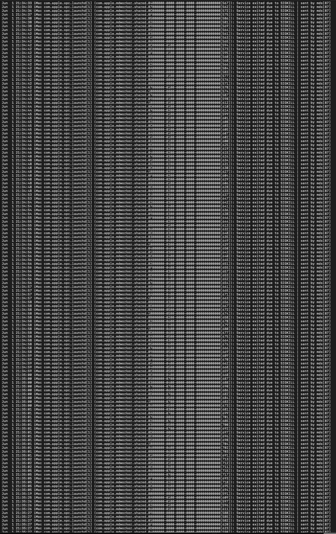 Hello all. This is a continuation of an issue brought up in this 10.15 thread (https://forums.macrumors.com/threads/update-to-10-15-5.2239185/?post=28521359#post-28521359) of mdworker.shared absolutely destroying the system.log with hundreds of the same err message per minute.