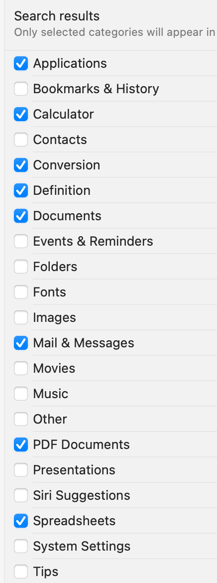 For some time now, at least through Catalina and Ventura and probably Big Sur, whenever I do a Finder spotlight search, it generally shows a lot of files not pertaining to the search. I've attached screenshots of both the search results for "Chairs" and the System Settings screens as examples.